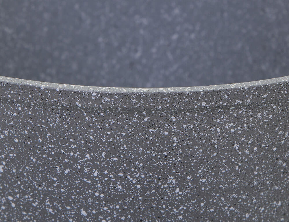 Το τηγάνι με αντικολλητική επίστρωση από τη 5five είναι ιδανική για τηγάνισμα, ψήσιμο κρεάτων, σοτάρισμα λαχανικών κτλ. Είναι κατασκευασμένο από αλουμίνιο και προσφέρει ομοιόμορφη κατανομή της θερμοκρασίας για τέλειο ψήσιμο και γρήγορο μαγείρεμα. Η εργονομική αντιολισθητική λαβή από βακελίτη διατηρεί κρύα θερμοκρασία για άνετο κράτημα χωρίς τραυματισμούς. Eίναι ανθεκτικό στα γδαρσίματα και εξασφαλίζεται μεγαλύτερη διάρκεια ζωής. Κατάλληλο για εστίες αλογόνου, ηλεκτρικές εστίες, κεραμικές, επαγωγικές και εστίες υγραερίου. Για να διατηρηθεί η αντικολλητική επίστρωση είναι προτιμότερο να αφήνετε το σκεύος να κρυώσει πριν το καθαρίσετε και να αποφεύγετε το σύρμα καθαρισμού. Προτιμήστε ένα μαλακό, συνθετικό σφουγγάρι.