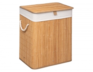 Καλάθι απλύτων με καπάκι κατασκευασμένο από ξύλο μπαμπού σε καφέ απόχρωση. Το καλάθι ρούχων είναι απόλυτα κατάλληλο για μικρούς χώρους και κρατά τα βρώμικα ρούχα σας κρυμμένα. Το ανθεκτικό υλικό και η πολυτελής εμφάνιση αυτού του καλαθιού για άπλυτα ρούχα δίνουν στο μπάνιο σας μια εντελώς νέα εμφάνιση. Εσωτερικά διαθέτει υφασμάτινη θήκη για να μην φεύγουν τα ρούχα σας έξω από το καλάθι. Επίσης, διαθέτει χερούλια για να το μεταφέρετε πιο εύκολα και η θήκη αφαιρείται εύκολα και μπορεί να πλυθεί.
