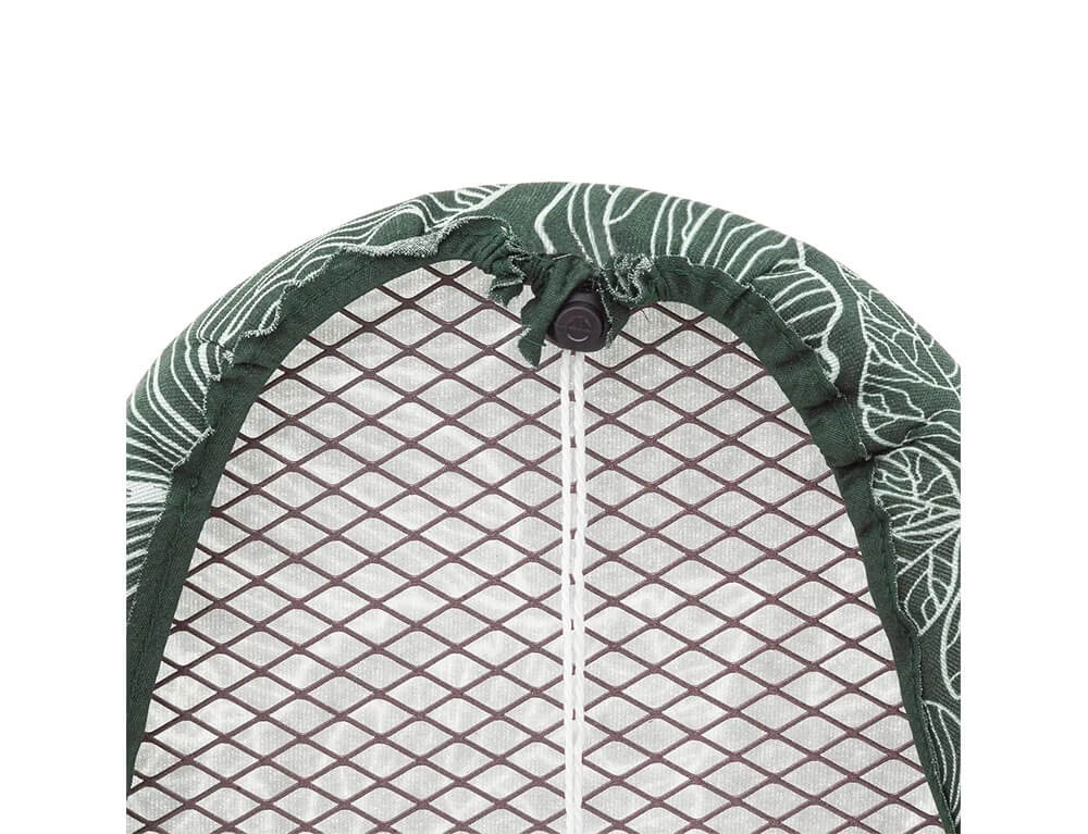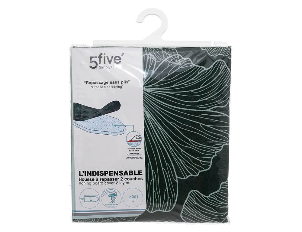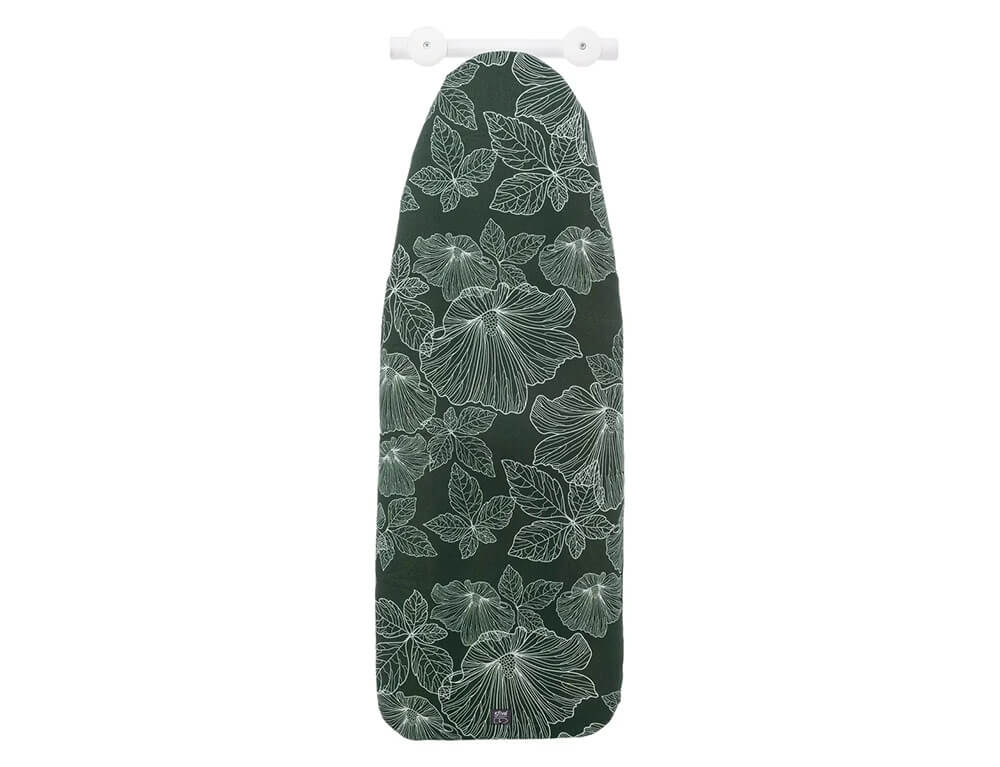 Κάλυμμα σιδερώστρας από τη 5five σε πράσινο χρώμα με floral σχέδιο. Αποτελείται από 2 στρώσεις για περισσότερη άνεση και απόδοση σιδερώματος. Διαθέτει κορδόνι σύσφιξης με κλιπ ελατηρίου για να έχει πλήρη εφαρμογή στη σιδερώστρα σας. Η μια στρώση είναι κατασκευασμένη από βαμβακερό και πολυεστερικό ύφασμα και η δεύτερη στρώση είναι από αφρό πολυουρεθάνης. Είναι κατάλληλο για σιδερώστρες με μέγεθος 128x45cm και 135x48cm.