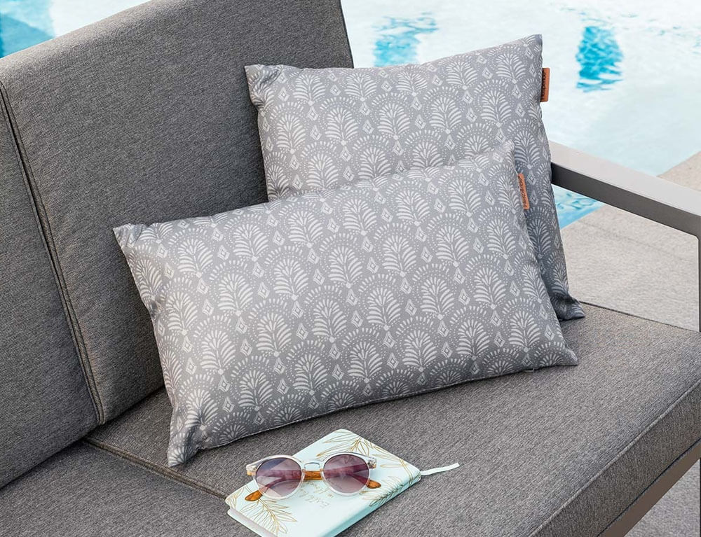 Διακοσμήστε και δώστε επιπλέον χρώμα στο σπίτι σας ή στον κήπο σας με το μαξιλάρι από την Hespéride σε γκρι απόχρωση. Το εξωτερικό ύφασμα είναι κατασκευασμένο από 100% πολυεστέρα, που το καθιστά ισχυρό και ανθεκτικό και είναι κατάλληλο για χρήση είτε σε εσωτερικό είτε σε εξωτερικό χώρο. Το κάλυμμα είναι αδιάβροχο, αφαιρείται χάρη στο φερμουάρ που διαθέτει και καθαρίζεται εύκολα. Προτείνεται σε ακραίες καιρικές συνθήκες το μαξιλάρι να αποθηκεύεται.