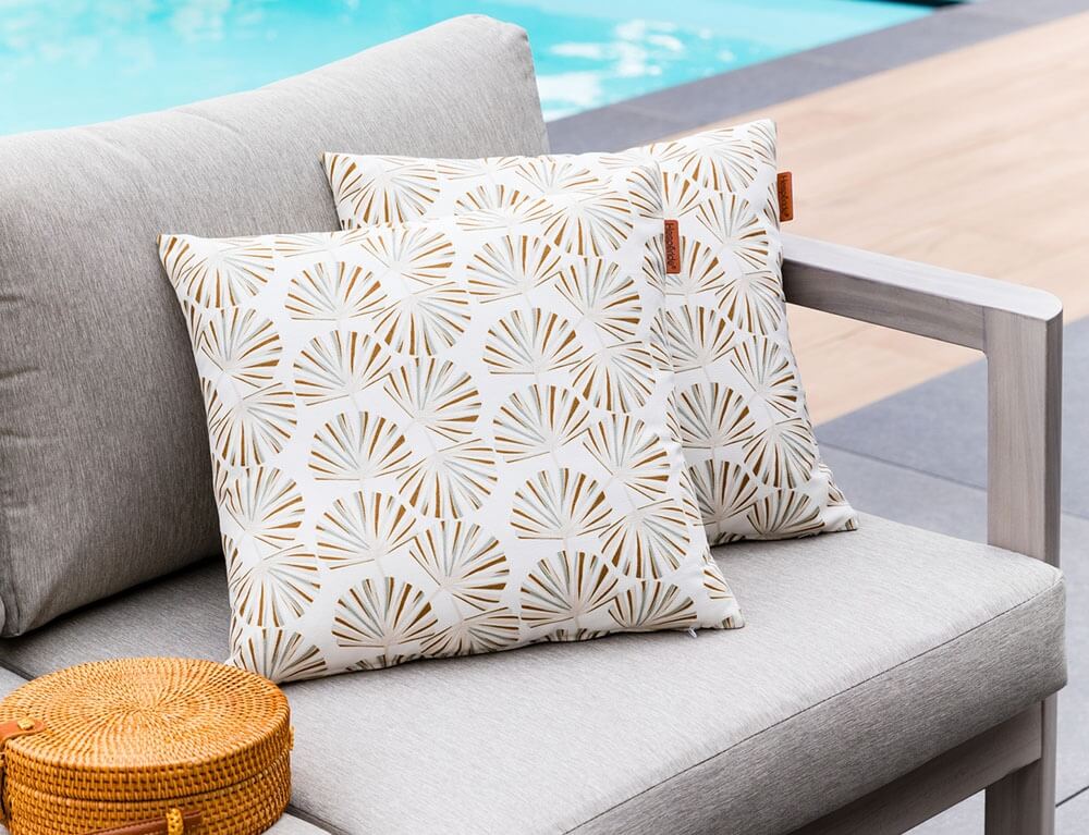 Διακοσμήστε και δώστε επιπλέον χρώμα στο σπίτι σας ή στον κήπο σας με το μαξιλάρι από την Hespéride σε λευκή απόχρωση με γκρι, πράσινα και καφέ λεπτομέρειες. Το εξωτερικό ύφασμα είναι κατασκευασμένο από 100% πολυεστέρα, που το καθιστά ισχυρό και ανθεκτικό και είναι κατάλληλο για χρήση είτε σε εσωτερικό είτε σε εξωτερικό χώρο. Το κάλυμμα είναι αδιάβροχο, αφαιρείται χάρη στο φερμουάρ που διαθέτει και καθαρίζεται εύκολα. Προτείνεται σε ακραίες καιρικές συνθήκες το μαξιλάρι να αποθηκεύεται.