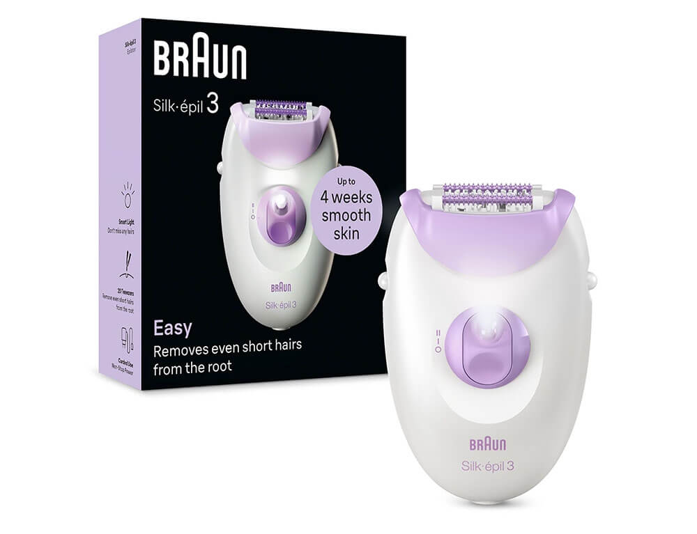 Η αποτριχωτική συσκευή Braun Silk-épil 3 συνδυάζει αρμονικά το εργονομικό σχήμα, τον στρογγυλεμένο σχεδιασμό και την απαλή απόδοση.
