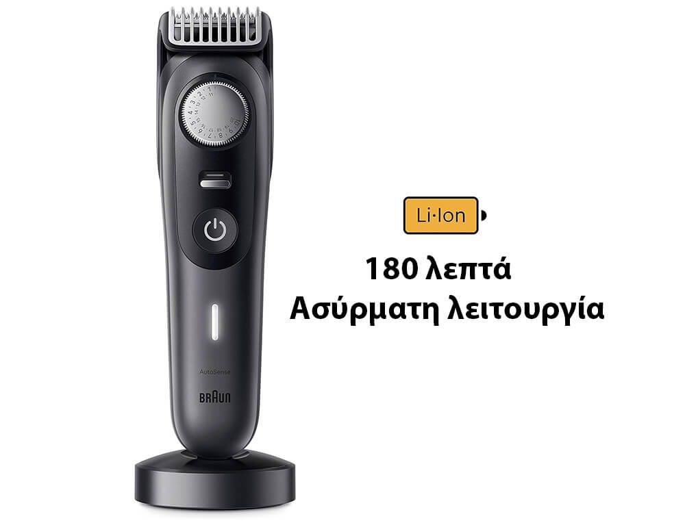 180 λεπτά αυτονομία λειτουργίας με φόρτιση 150 λεπτά. Γρήγορη φόρτιση 5’ λεπτών για ένα ξύρισμα.