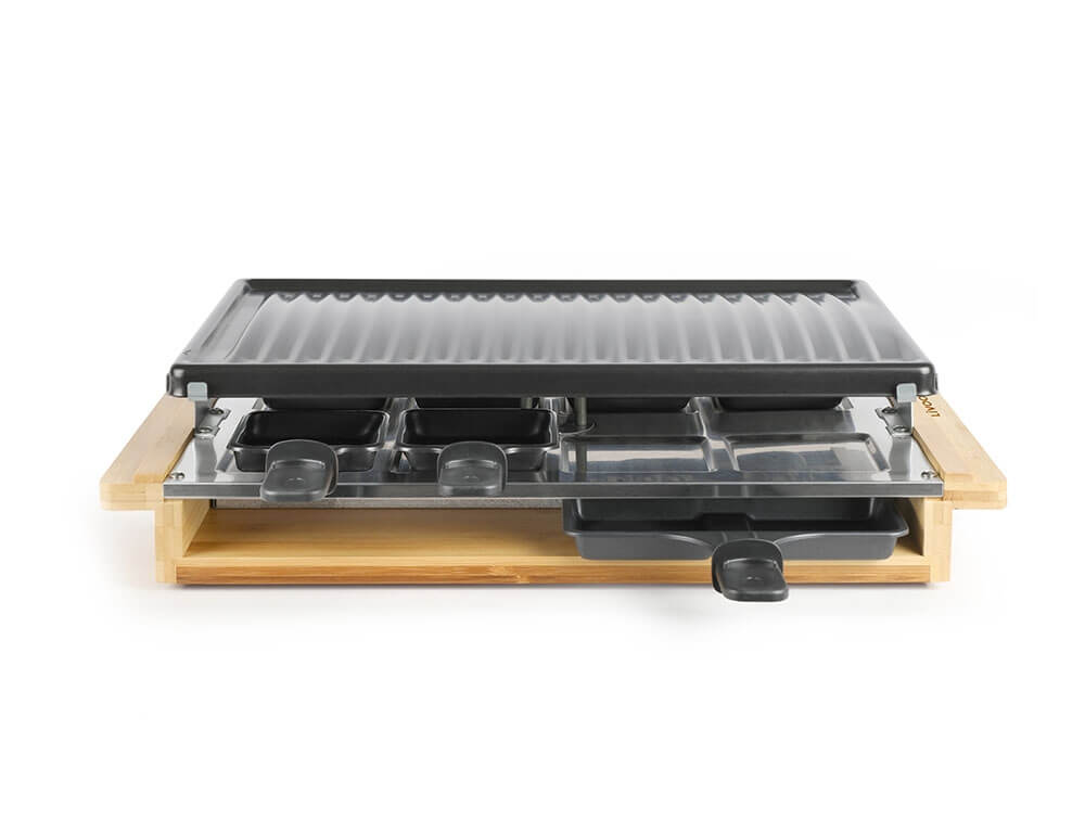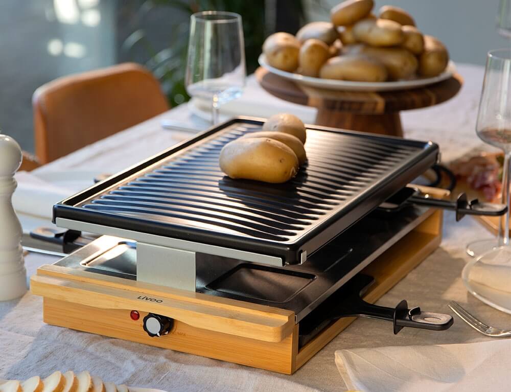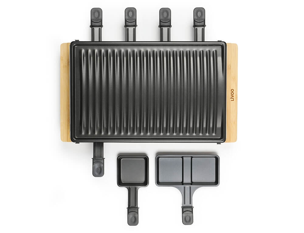 Η ηλεκτρική γκριλιέρα raclette της Livoo, σας δίνει τη δυνατότητα να περάσετε μια φανταστική βραδιά με την οικογένεια ή τους φίλους σας. Ετοιμάζετε το φαγητό όλοι μαζί και ο καθένας παίρνει ακριβώς αυτό που θέλει! Ένας σύγχρονος τρόπος σερβιρίσματος περιλαμβάνει μια ηλεκτρική επιτραπέζια σχάρα με μικρά τηγάνια, γνωστά ως τηγάνια raclette, τα οποία είναι ιδανικά για να ετοιμάζετε νόστιμες ομελέτες, τηγανίτες ή λιωμένο τυρί. Είναι ιδανικό για 8 άτομα χάρη στη μεγάλη επιφάνεια μαγειρέματος και τα 8 μονά και 4 διπλά τηγάνια που περιλαμβάνονται.