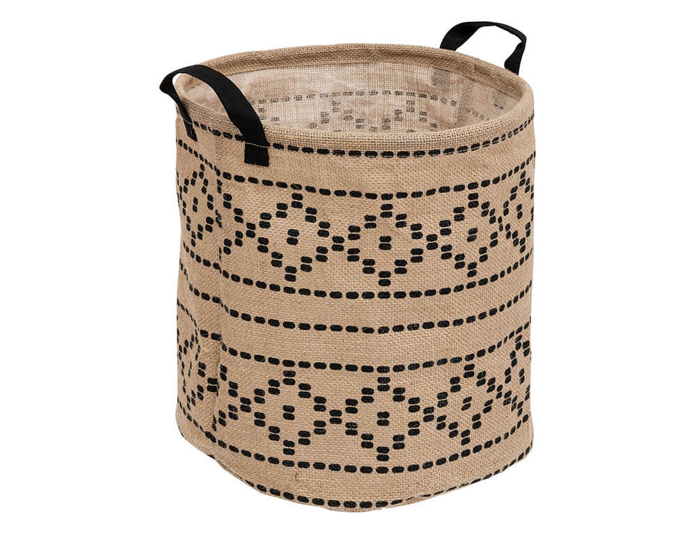 Διακοσμητικό καλάθι από γιούτα σε καφέ απόχρωση με γεωμετρικά σχέδια. Διαθέτει λαβές για περισσότερη ευκολία στη μετακίνηση. Μπορεί να λειτουργήσει σαν διακοσμητικό στοιχείο σε οποιαδήποτε γωνία του σπιτιού σας αλλα και σαν αποθηκευτικός χώρος. Ιδανικό για να κρατήσει οργανωμένα τα μικροαντικείμενα, τα περιοδικά και ότι άλλο φανταστείτε, δίνοντας παράλληλα μια φρέσκια ανάσα στο χώρο σας.