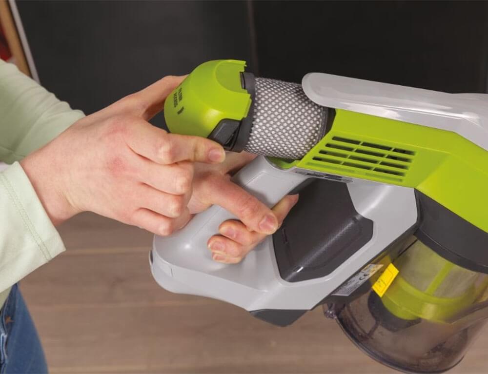 Με το βολικό σύστημα απελευθέρωσης βούρτσας, μπορείτε να τραβήξετε τον κύλινδρο προς τα έξω γρήγορα και εύκολα, χωρίς να απαιτούνται εργαλεία. Αυτό διευκολύνει την αφαίρεση τυχόν μπλεγμένων μαλλιών χάρη στον πρακτικό οδηγό, διατηρώντας το stick σας πάντα σε άριστη κατάσταση.
