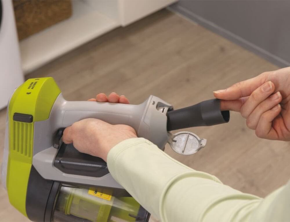 Το HF1 είναι εξοπλισμένο με 2 εργαλεία έτοιμα προς χρήση. Η ενσωματωμένη βούρτσα ξεσκονίσματος καθαρίζει ευαίσθητες επιφάνειες όπως ράφια βιβλίων και αφαιρεί τα υπολείμματα από τους πάγκους εργασίας σας. Το πρακτικό ρύγχος γωνιών, βολικά αποθηκευμένο στο σώμα της συσκευής, καθαρίζει τις κλειστές γωνίες, τα σοβατεπί ή τις άκρες.