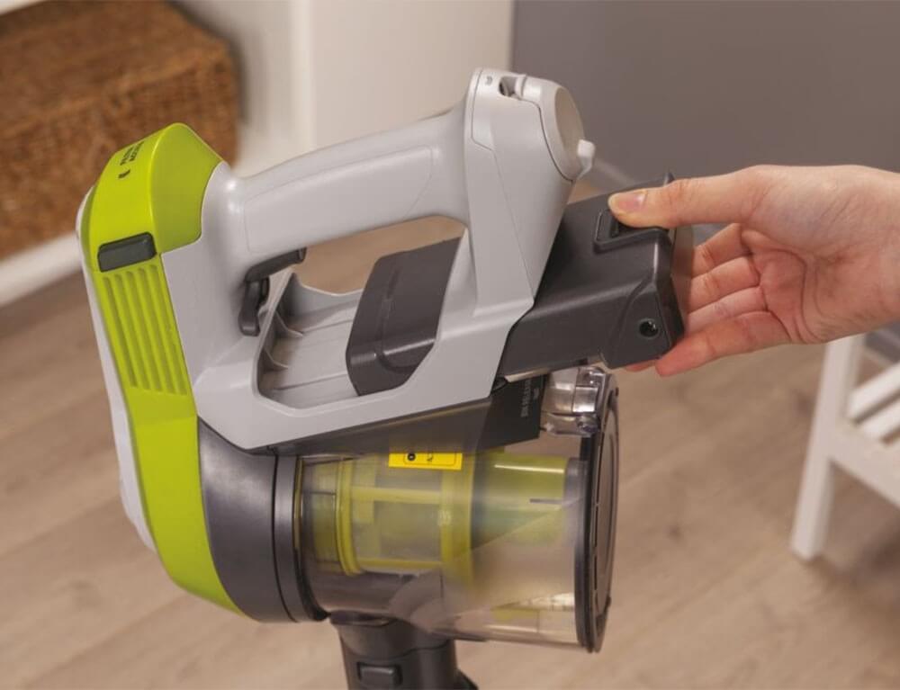 Με το σύστημα One Touch αδειάζετε εύκολα, γρήγορα αλλά κυρίως υγιεινά τον κάδο του stick HF1 χωρίς να χρειάζεται να έρθετε σε επαφή με σκόνη και υπολείμματα.