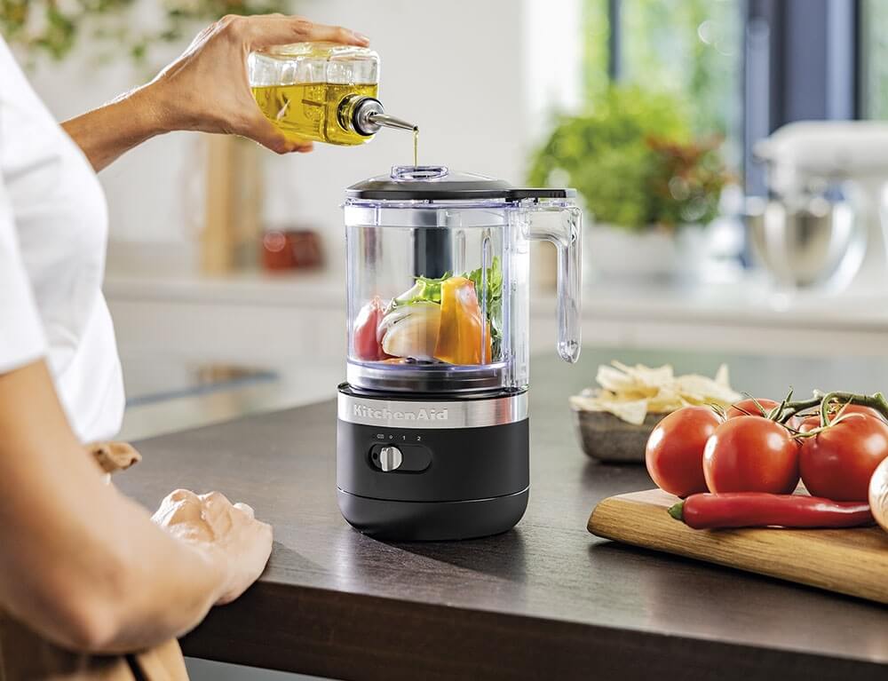 Ακόμα και οι πιο πολύπλοκες και απαιτητικές συνταγές εκτελούνται με επιτυχία χάρη στην KitchenAid κουζινομηχανή. Αναμειγνύει αποτελεσματικά οποιαδήποτε υλικά, ενώ το άνοιγμα στο καπάκι επιτρέπει τη σταδιακή προσθήκη υγρών κατά τη λειτουργία για τέλεια υφή! Απολαύστε αρωματικό pesto, θρεπτικό χούμους και πλούσια μαγιονέζα! Σπιτικά, υγιεινά, νόστιμα!