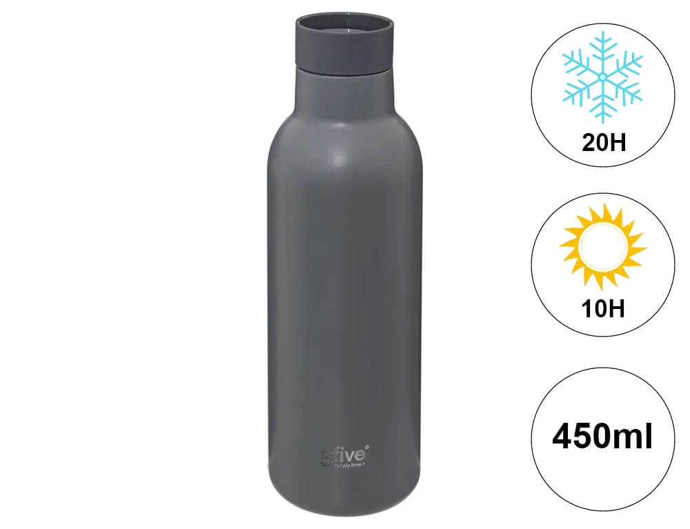Mπουκάλι Θερμός 5five με καπάκι 360°, χωρητικότητα 450ml και διατήρηση θερμοκρασίας 10h ζεστό / 20h κρύο - Pebble Gray