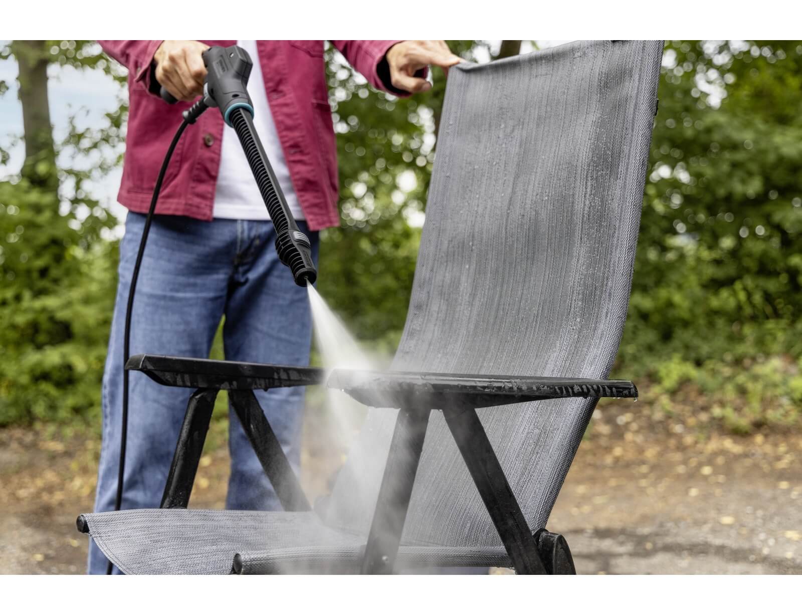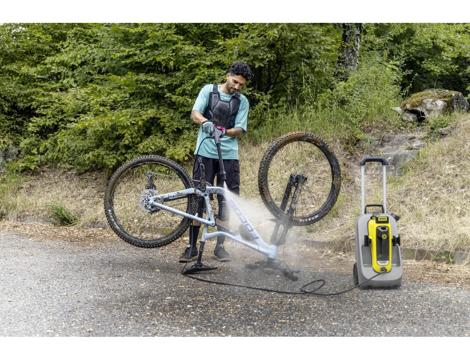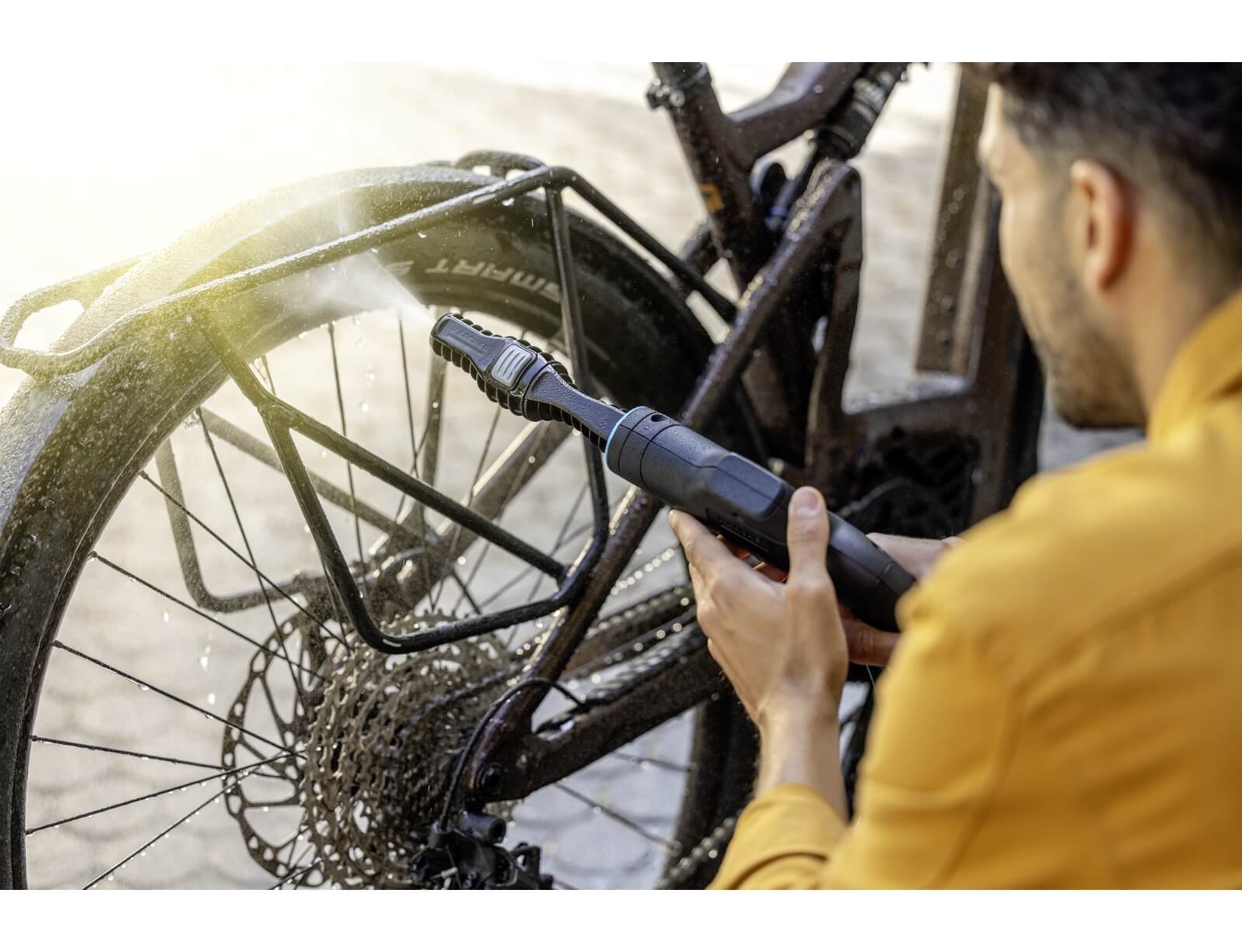 - Το καρότσι νερού 12 λίτρων επιτρέπει ανεξάρτητο καθαρισμό εν κινήσει. Το νερό επαρκεί για 3 έως 5 πολύ λερωμένα ποδήλατα ή πολλά αντικείμενα όπως καρέκλες κήπου/κάμπινγκ.