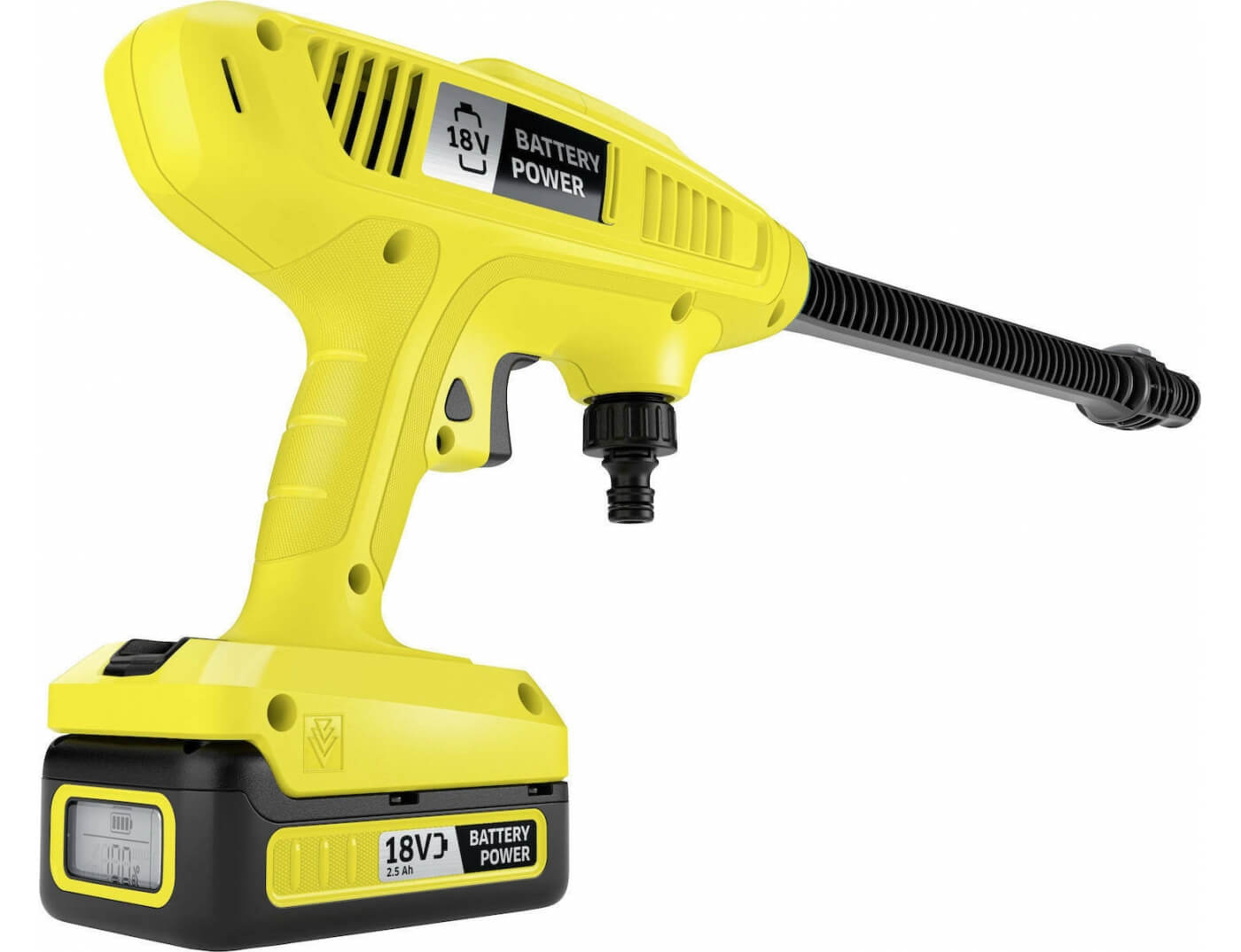 Η Kärcher καθαρίζει γρήγορα και χωρίς επιπλοκές – το εύχρηστο και compact πλυστικό μεσαίας πίεσης μπορεί να χρησιμοποιηθεί απευθείας για καθάρισμα χωρίς μεγάλη προετοιμασία. Με το απαλό επίπεδο ακροφύσιο, οι ρύποι μπορούν να αφαιρεθούν από έπιπλα κήπου, παιχνίδια, κάδους και πολλά άλλα αντικείμενα και επιφάνειες σε χρόνο μηδέν. Η μεγάλη γκάμα προαιρετικών αξεσουάρ, όπως, η κάνη αφρού, η βούρτσα πλύσης, ο σωλήνας αναρρόφησης και το ακροφύσιο 5 σε 1 επιτρέπει και περαιτέρω εφαρμογές. Επιπλέον, μια άλλη ανταλλάξιμη μπαταρία 18 volt και ένας φορτιστής μπαταρίας περιλαμβάνονται στη συσκευασία.