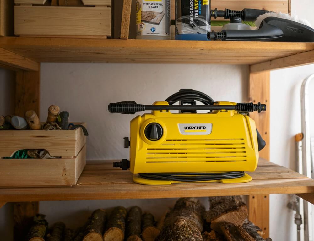 Αποθήκευσε τον εύκαμπτο σωλήνα, τις λόγχες ψεκασμού, το πιστόλι σκανδάλης και το καλώδιο με τρόπο που εξοικονομεί χώρο και τακτοποιημένο.