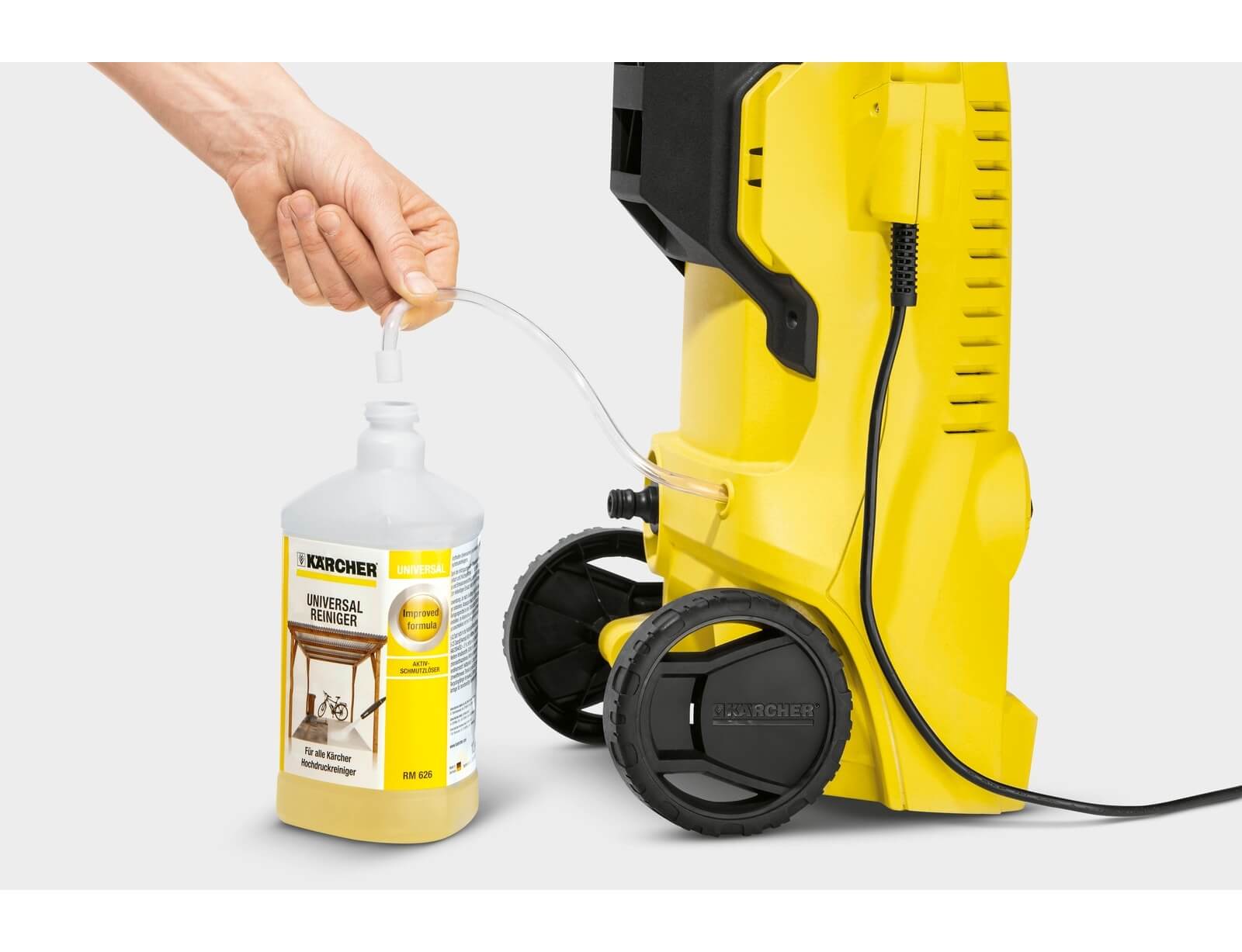 - Για γρήγορη, άνετη εφαρμογή του χημικού με το πλυστικό μηχάνημα.