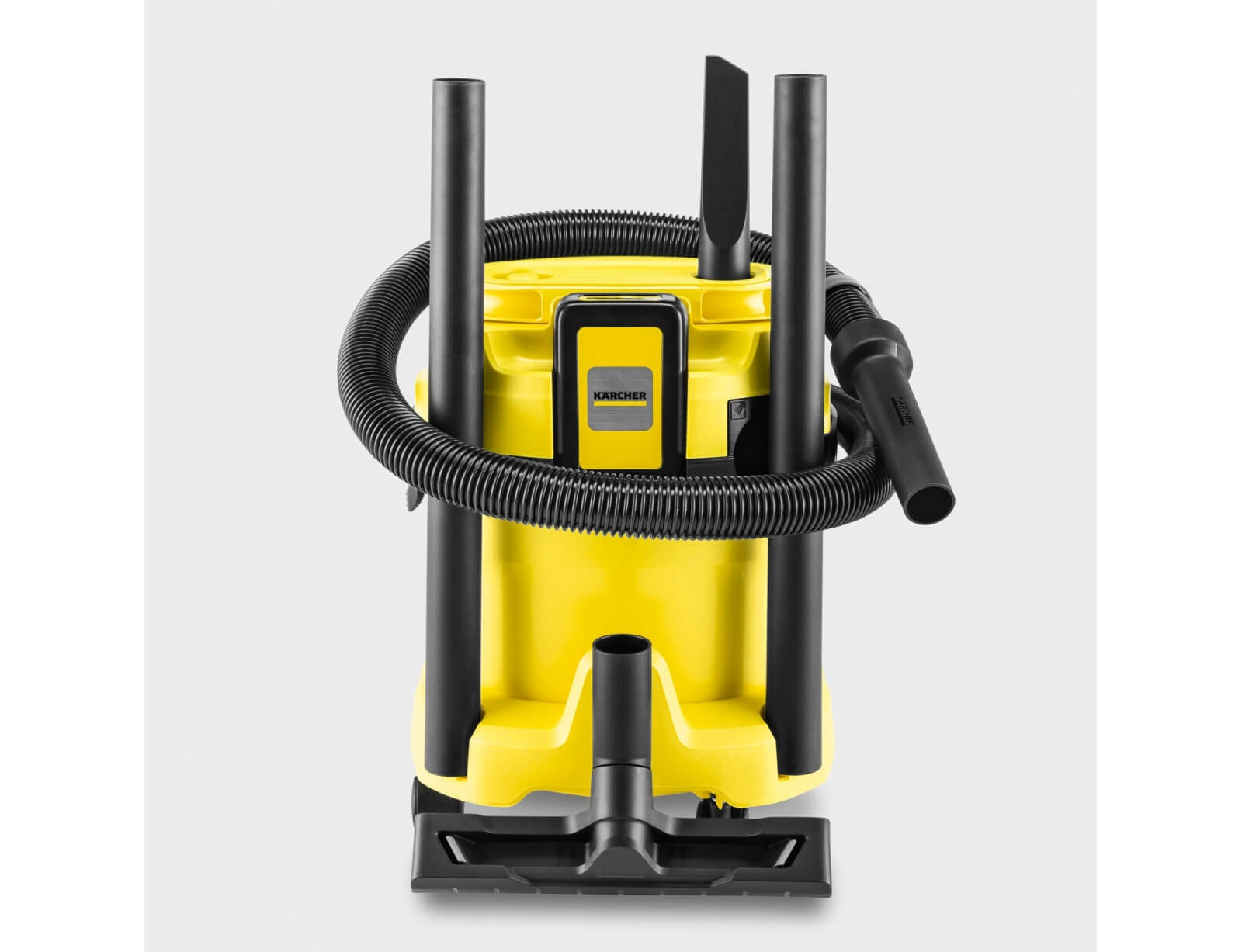 Χωρίς καλώδιο. Χωρίς όρια: η μπαταριοκίνητη σκούπα υγρής και ξηρής αναρρόφησης WD 2-18 που λειτουργεί με μπαταρία προσφέρει μέγιστη ευελιξία, συμπαγή σχεδιασμό και ελευθερία κινήσεων. Η συσκευή συνδυάζει τέλεια έναν εύκαμπτο σωλήνα αναρρόφησης μήκους 1,8 μέτρων και το ακροφύσιο δαπέδου με κλιπ και μπορεί να αφαιρέσει υγρούς, λεπτόκοκκους ή χονδροειδείς ρύπους σε ελάχιστο χρόνο. Η συσκευή είναι επίσης εξοπλισμένη με ένα στιβαρό πλαστικό δοχείο 12 λίτρων καθώς και μια σακούλα φίλτρου fleece. Η αποθήκευση του σωλήνα αναρρόφησης εξοικονομεί χώρο. απλά κρέμασέ το με ασφάλεια στην κεφαλή της συσκευής. Άλλα χαρακτηριστικά περιλαμβάνουν την πρακτική λειτουργία φυσητήρα για χώρους όπου δεν είναι εφικτό το σκούπισμα, το ράφι αποθήκευσης εργαλείων και μικροαντικειμένων, ο περιστροφικός διακόπτης για εύκολη ενεργοποίηση και απενεργοποίηση της συσκευής, η εργονομικά διαμορφωμένη λαβή μεταφοράς καθώς και το "Pull & Push" σύστημα κλειδώματος που επιτρέπει στο δοχείο να ανοίγει και να κλείνει εύκολα. Η θέση στάθμευσης που παρέχεται στον προφυλακτήρα επιτρέπει στους σωλήνες και το ακροφύσιο δαπέδου να αποθηκεύονται γρήγορα και άνετα όταν κάνεις ένα μικρό διάλειμμα από την εργασία. Το εύρος παροχής περιλαμβάνει την μπαταρία 18 V/2,5 Ah Kärcher Battery Power και έναν φορτιστή μπαταρίας.