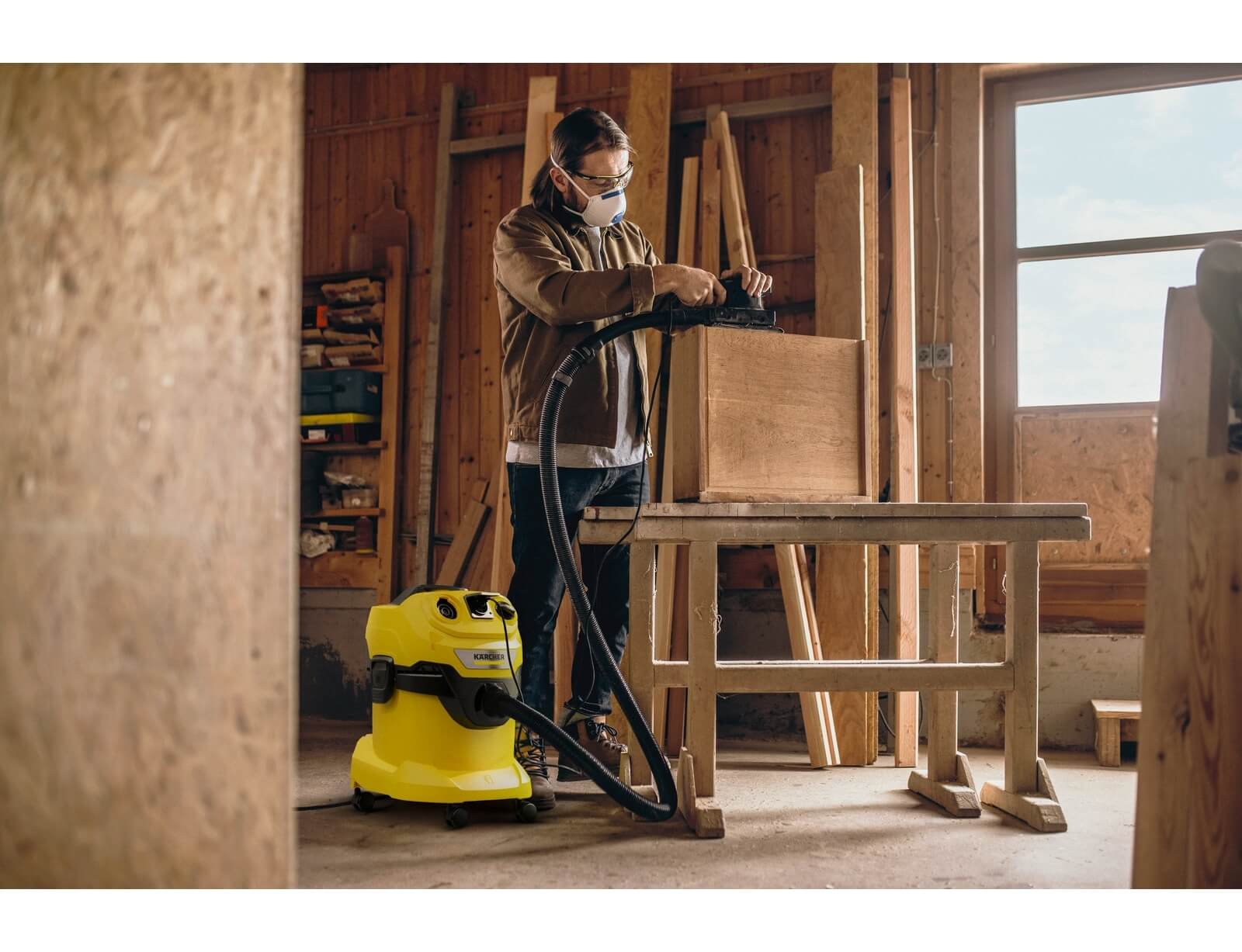 Εξαιρετικά ισχυρή και ενεργειακά αποδοτική με 1000 W: Η WD 4 P V-20/5/22, ο εύκαμπτος σωλήνας αναρρόφησης και το ακροφύσιο δαπέδου με κλιπ συντονίζονται βέλτιστα για τα καλύτερα αποτελέσματα καθαρισμού. Οι υγροί και οι ξηροί ρύποι ακόμη και οι χονδροειδείς απομακρύνονται εύκολα χωρίς αλλαγή του φίλτρου. Η συσκευή διαθέτει ένα στιβαρό και ανθεκτικό στην κρούση πλαστικό κάδο 20 λίτρων, ένα καλώδιο 5 μέτρων, έναν εύκαμπτο σωλήνα αναρρόφησης 2,2 μέτρων, ακροφύσιο δαπέδου με κλιπ, ένα επίπεδο πτυχωτό φίλτρο και μια σακούλα φίλτρου fleece. Η ενσωματωμένη πρίζα με αυτόματο διακόπτη on/off απλοποιεί την εργασία με ηλεκτρικά εργαλεία. Χάρη στην πατενταρισμένη τεχνολογία, το φίλτρο μπορεί να αφαιρεθεί εύκολα και γρήγορα – χωρίς να έρχεσαι σε επαφή με βρωμιά. Όπου δεν είναι δυνατή η αναρρόφηση, βοηθάει η πρόσθετη λειτουργία φυσητήρα. Η αφαιρούμενη λαβή επιτρέπει την απευθείας σύνδεση εξαρτημάτων στον εύκαμπτο σωλήνα αναρρόφησης. Ο εύκαμπτος σωλήνας μπορεί να αποθηκευτεί συμπαγώς στην κεφαλή της συσκευής. Οι σωλήνες και το ακροφύσιο δαπέδου είναι επίσης γρήγορα και άνετα σταθμευμένα στον προφυλακτήρα. Άλλα πλεονεκτήματα περιλαμβάνουν το σύστημα κλειδώματος "Pull & Push" για εύκολο άνοιγμα και κλείσιμο του κάδου, καθώς και μια εργονομικά διαμορφωμένη λαβή μεταφοράς για άνετη μεταφορά της συσκευής.