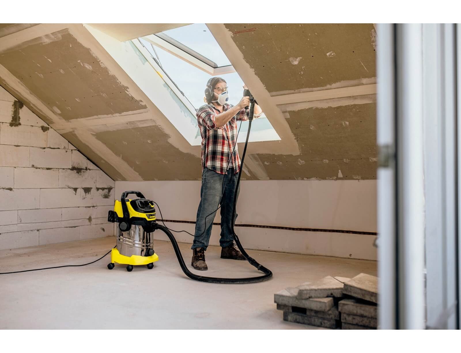 Εξαιρετικά ισχυρή αναρρόφηση και εξαιρετική ενεργειακή απόδοση, με κατανάλωση ενέργειας μόλις 1300 Watt: Η σκούπα υγρής και ξηρής αναρρόφησης WD 6 P S V-30/6/22/T διαθέτει κάδο από ανοξείδωτο ατσάλι 30 λίτρων, καλώδιο ρεύματος 6 μέτρων και σωλήνα αναρρόφησης μήκους 2,2 μέτρων. Ο κοχλίας αποστράγγισης μπορεί να χρησιμοποιηθεί για την εύκολη αποστράγγιση υγρών που έχουν απορροφηθεί με την σκούπα. Ηλεκτρικά εργαλεία όπως πριόνια ή τριβεία μπορούν να συνδεθούν μέσω της ενσωματωμένης πρίζας με αυτόματο διακόπτη on/off. Οι ρύποι που προκύπτουν αφαιρούνται αμέσως με αναρρόφηση. Ο περιστροφικός διακόπτης επιτρέπει στο χρήστη να ρυθμίζει την ισχύ αναρρόφησης για να καλύψει τις ανάγκες του. Το επίπεδο πτυχωτό φίλτρο μπορεί να αφαιρεθεί ανοίγοντας το κουτί του φίλτρου, χωρίς να χρειάζεται να έρθει σε επαφή ο χειριστής με τους ρύπους. Επιπλέον, το φίλτρο μπορεί να καθαριστεί αποτελεσματικά πατώντας το κουμπί καθαρισμού φίλτρου, αποκαθιστώντας έτσι την πλήρη ισχύ αναρρόφησης. Η λειτουργία φυσητήρα είναι ιδιαίτερα χρήσιμη όταν καθαρίζετε ευαίσθητα αντικείμενα. Η αφαιρούμενη λαβή με ηλεκτροστατική προστασία επιτρέπει την απευθείας σύνδεση των εξαρτημάτων στον εύκαμπτο σωλήνα αναρρόφησης, κάτι που είναι ιδιαίτερα ωφέλιμο όταν σκουπίζεις με ηλεκτρική σκούπα λεπτή σκόνη. Επιπλέον πλεονεκτήματα περιλαμβάνουν το γεγονός ότι ο εύκαμπτος σωλήνας αναρρόφησης μπορεί να αποθηκευτεί εύκολα αναρτώντας τον στην κεφαλή της συσκευής, καθώς και η θέση στάθμευσης για το ακροφύσιο δαπέδου.