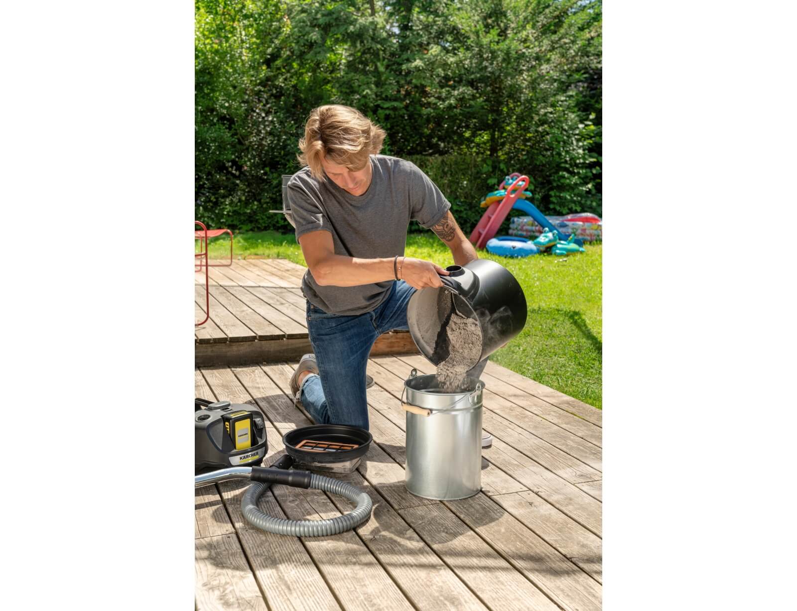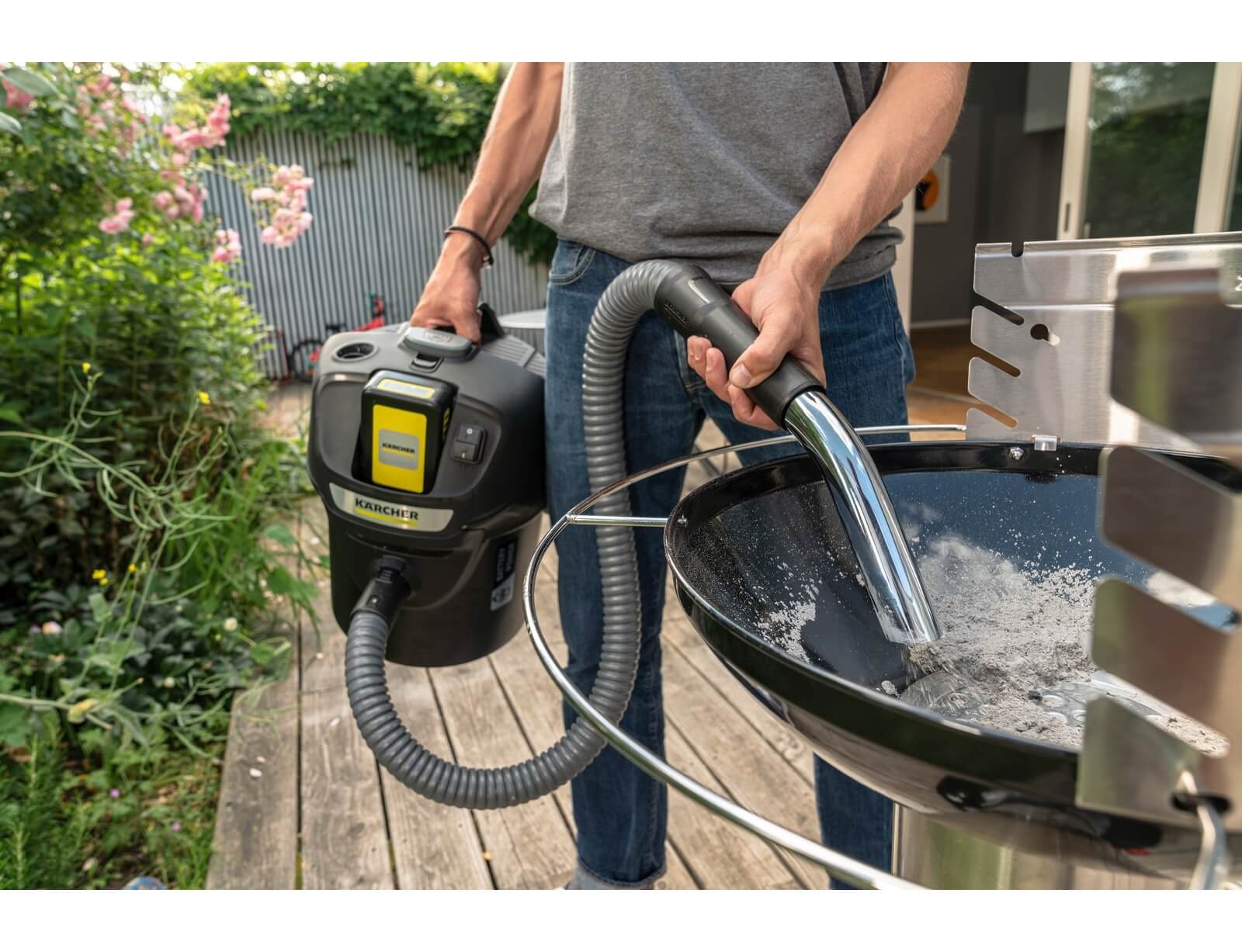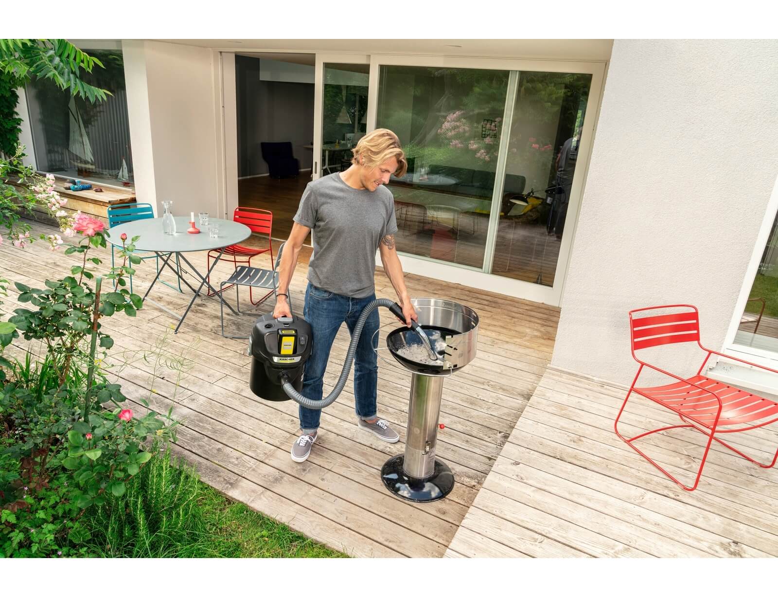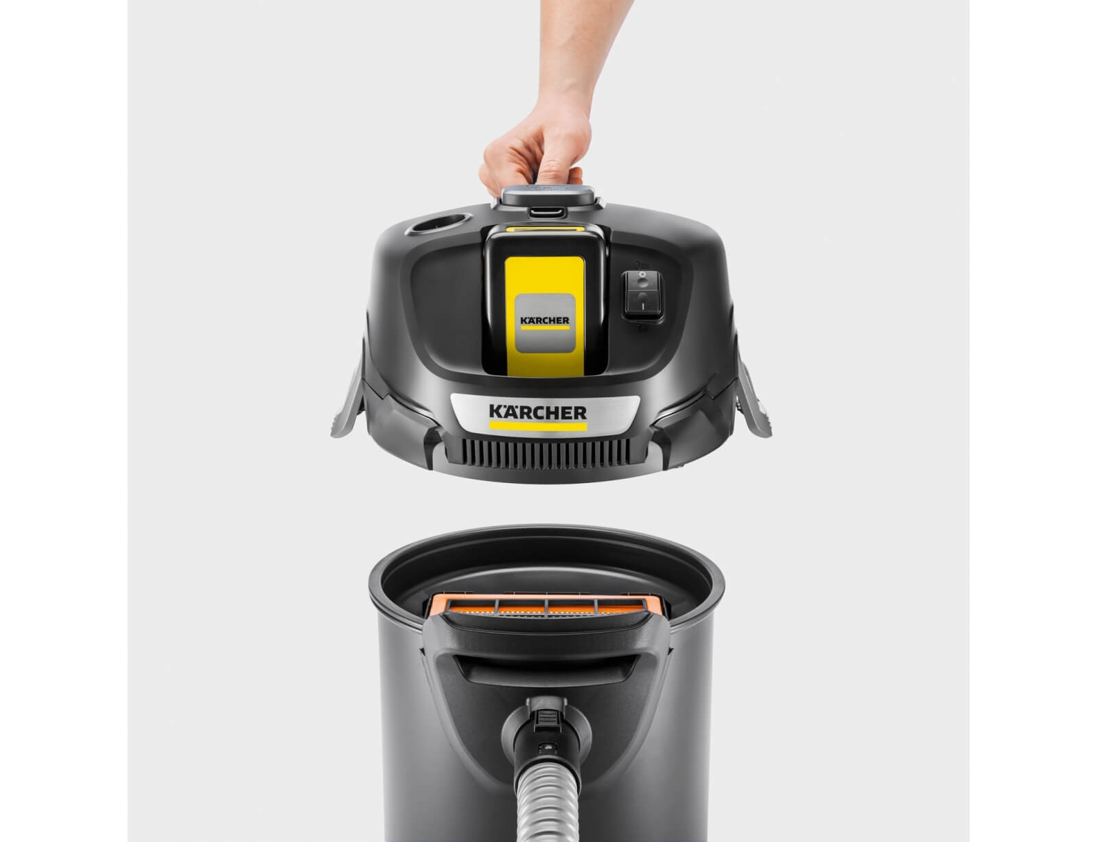 Η σκούπα στάχτης μπαταρίας AD 2 Battery διευκολύνει τη γρήγορη απομάκρυνση της στάχτης από τζάκια, συστήματα θέρμανσης με πέλετ ή μπάρμπεκιου με κάρβουνο. Η ισχυρή επαναφορτιζόμενη μπαταρία της πλατφόρμας 18 V Battery Power της Kärcher, με τεχνολογία Real Time για την ένδειξη του χρόνου λειτουργίας της μπαταρίας σε μια ενσωματωμένη οθόνη LCD, παρέχει την απαραίτητη ισχύ. Σε συνδυασμό με έξυπνες καινοτομίες, όπως η λειτουργία ReBoost για αποτελεσματικό καθαρισμό του φίλτρου με το πάτημα ενός κουμπιού, διασφαλίζεται η σταθερά υψηλή ισχύς αναρρόφησης ανά πάσα στιγμή. Οι χονδρόκοκκοι ρύποι, η στάχτη ή ακόμη και τα λεπτά σωματίδια σκόνης αναρροφώνται αποτελεσματικά - ακόμα και από τα δυσπρόσιτα μέρη, χάρη στον λοξό σωλήνα χειρός. Ο εύκαμπτος σωλήνας αναρρόφησης από επικαλυμμένο μέταλλο, καθώς και ο πυράντοχος κάδος χωρητικότητας 14 λίτρων, εξασφαλίζουν μέγιστη ασφάλεια. Και, με το ανθεκτικό επίπεδο πτυχωτό φίλτρο και το μεταλλικό φίλτρο χονδρόκοκκων ρύπων, ο εξερχόμενος αέρας παραμένει επίσης χωρίς σκόνη. Αφού ολοκληρωθεί η εργασία, ο σωλήνας αναρρόφησης απλώς αποθηκεύεται εντός της συσκευής και όλα αποθηκεύονται σε μικρό χώρο. Η μπαταρία είναι συμβατή με όλες τις συσκευές στην πλατφόρμα μπαταριών 18V της Kärcher.