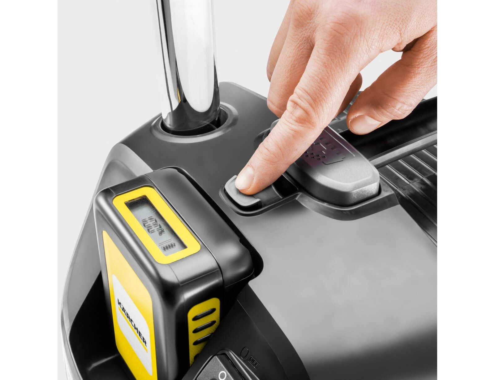 Μέγιστη ελευθερία κινήσεων χάρη στην ευελιξία που προσφέρει η ασύρματη λειτουργία. Τεχνολογία Real Time με οθόνη LCD για ένδειξη της κατάστασης φόρτισης της μπαταρίας. Συμβατότητα με όλες τις συσκευές της πλατφόρμας 18 V Battery Power της Kärcher.