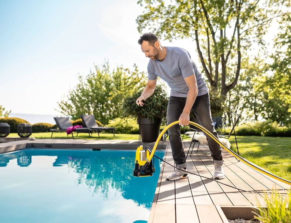 Η πιο ισχυρή υποβρύχια αντλία καθαρού νερού από την Kärcher αντλεί έως και 17.000 λίτρα καθαρού έως ελαφρώς μολυσμένου νερού ανά ώρα και επομένως είναι ιδανική για πισίνες, φρεάτια αποστράγγισης και ζημιές από το νερό στο κτίριο. Η χρήση του προφίλτρου από ανοξείδωτο χάλυβα που περιλαμβάνεται στο πεδίο παράδοσης συνιστάται για μεγαλύτερη μόλυνση και για την προστασία του στροφείου της αντλίας. Το στιβαρό περίβλημα από ανοξείδωτο χάλυβα καθώς και η στεγανοποίηση του δακτυλίου ολίσθησης καθιστούν την αντλία ιδιαίτερα ανθεκτική. Υπάρχει ακόμη και η επιλογή επέκτασης της εγγύησης στα πέντε χρόνια. Η υποβρύχια αντλία επίπεδης αναρρόφησης είναι εξοπλισμένη με έναν αισθητήρα απεριόριστης μεταβλητής στάθμης, ο οποίος εκκινεί την αντλία αμέσως μόλις έρθει σε επαφή με το νερό. Ο αισθητήρας επίπεδης στάθμης SP 17.000 διαθέτει επίσης πτυσσόμενα πόδια στήριξης, με τα οποία η υποβρύχια αντλία ξεκινά σε στάθμη νερού 7 mm. Με το διακόπτη η αντλία μπορεί να ρυθμιστεί σε συνεχή λειτουργία στη χειροκίνητη λειτουργία. Αντλεί αξιόπιστα το νερό μέχρι τη στάθμη του υπολειπόμενου νερού 1 χιλιοστού – τόσο κατά τη συνεχή λειτουργία όσο και στην αυτόματη λειτουργία, όταν ο αισθητήρας στάθμης έχει ρυθμιστεί ανάλογα. Το σπείρωμα σύνδεσης Quick Connect επιτρέπει επίσης την πολύ απλή σύνδεση εύκαμπτων σωλήνων 1", 1 1/4" και 1 1/2".