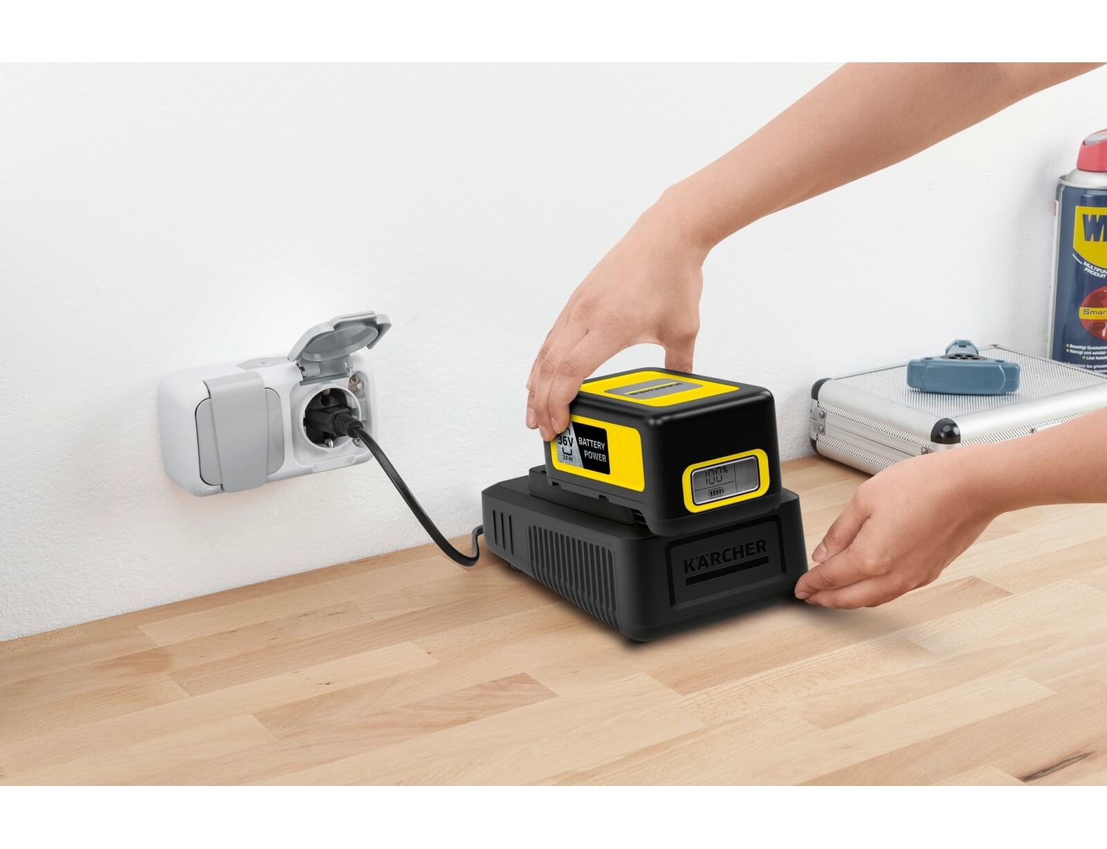 Φορτίζει την μπαταρία 36V / 2,5Ah της πλατφόρμας Battery Power της Kärcher στο 80% σε 48 λεπτά.