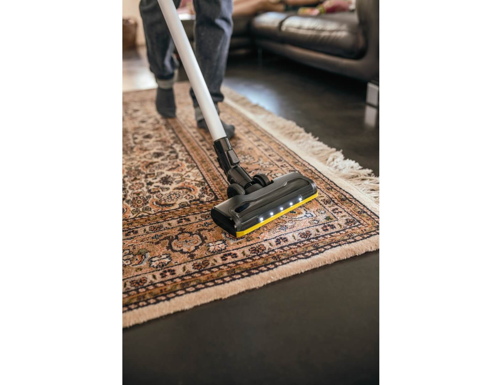 Βέλτιστη συλλογή ρύπων με μηχανοκίνητο ρόλερ. Η εξαιρετική ευελιξία καθιστά πολύ εύκολη τη μετακίνηση κάτω από έπιπλα. Εξασφαλίζει αξιόπιστο καθαρισμό επιφανειών.