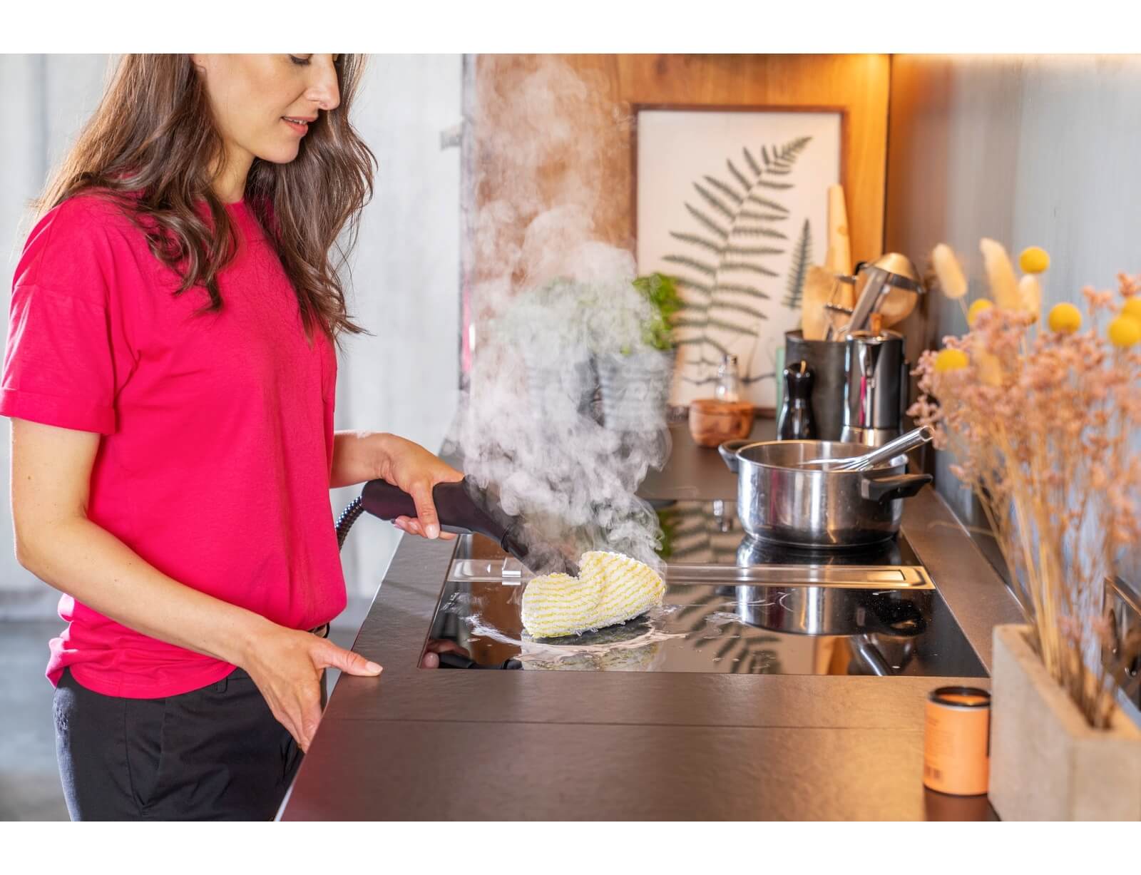 Ο εύκολος στη χρήση ατμοκαθαριστής SC 2 EasyFix παρέχει ρύθμιση ατμού σε δύο στάδια για την προσαρμογή της έντασης του ατμού στην επιφάνεια και το επίπεδο ρύπων. Η πρακτική αποθήκευση εξαρτημάτων στη συσκευή καθώς και η θέση στάθμευσης για το ακροφύσιο δαπέδου είναι χρήσιμες λεπτομέρειες για ακόμη πιο άνετο καθαρισμό με ατμό. Το ακροφύσιο δαπέδου EasyFix με εύκαμπτη άρθρωση εγγυάται εξαιρετική εργονομία και εξασφαλίζει τέλεια αποτελέσματα καθαρισμού. Χάρη στο βολικό σύστημα αγκίστρου και βρόχου, το πανί καθαρισμού δαπέδου μπορεί να προσαρτηθεί γρήγορα και εύκολα στο ακροφύσιο δαπέδου και να αφαιρεθεί ξανά χωρίς να πρέπει να έρθεις σε επαφή με τη βρωμιά. Το SC 2 EasyFix καθαρίζει εντελώς χωρίς χημικά και μπορεί να χρησιμοποιηθεί καθολικά. Ο σχολαστικός καθαρισμός με τον ατμοκαθαριστή της Kärcher απομακρύνει έως και 99,999% των ιών* και 99,99% όλων των κοινών οικιακών βακτηρίων** από τις τυπικές σκληρές επιφάνειες των νοικοκυριών. Χρησιμοποιώντας τα διάφορα εξαρτήματα, πλακάκια, εστίες, απορροφητήρες και ακόμη και τα μικρότερα κενά καθαρίζονται με υγιεινό τρόπο. Ακόμη και οι επίμονοι ρύποι απομακρύνονται αξιόπιστα.