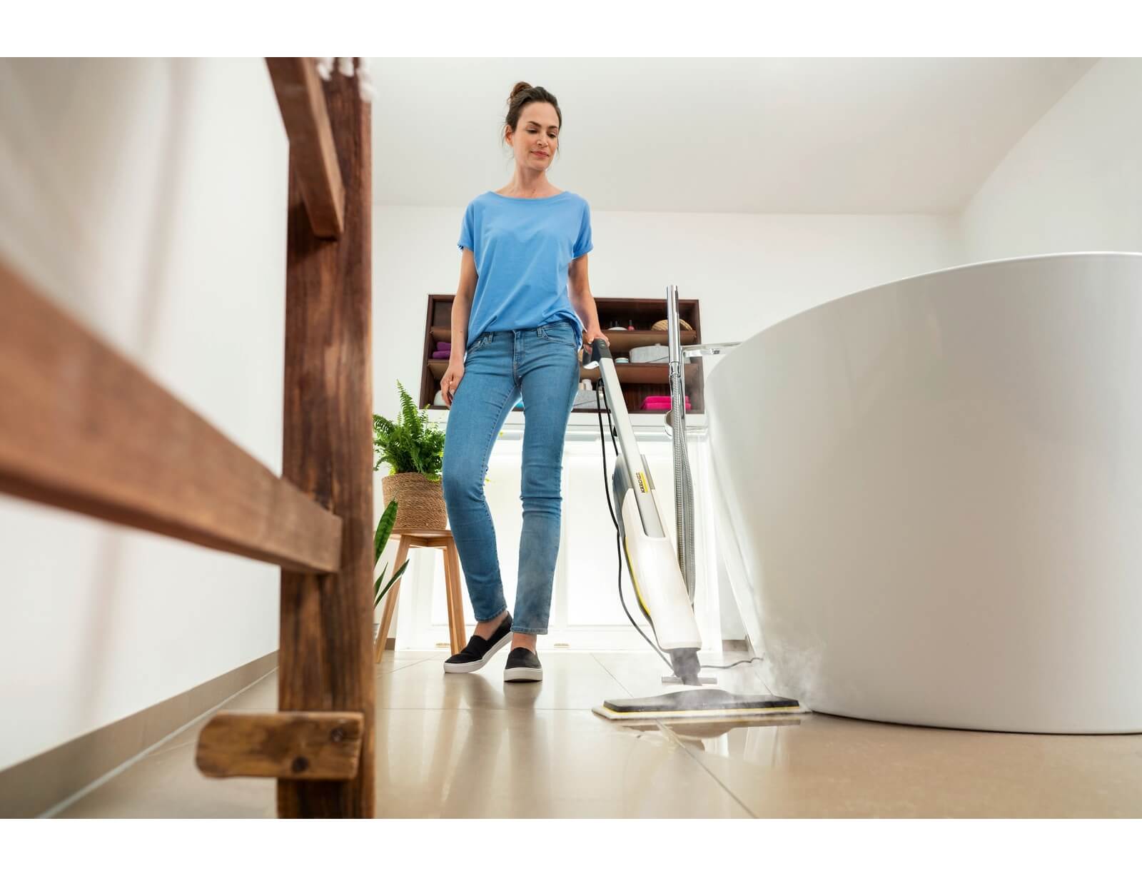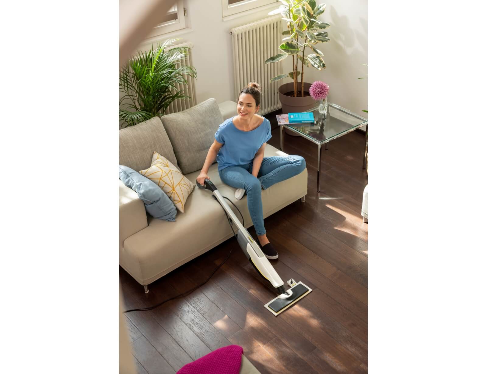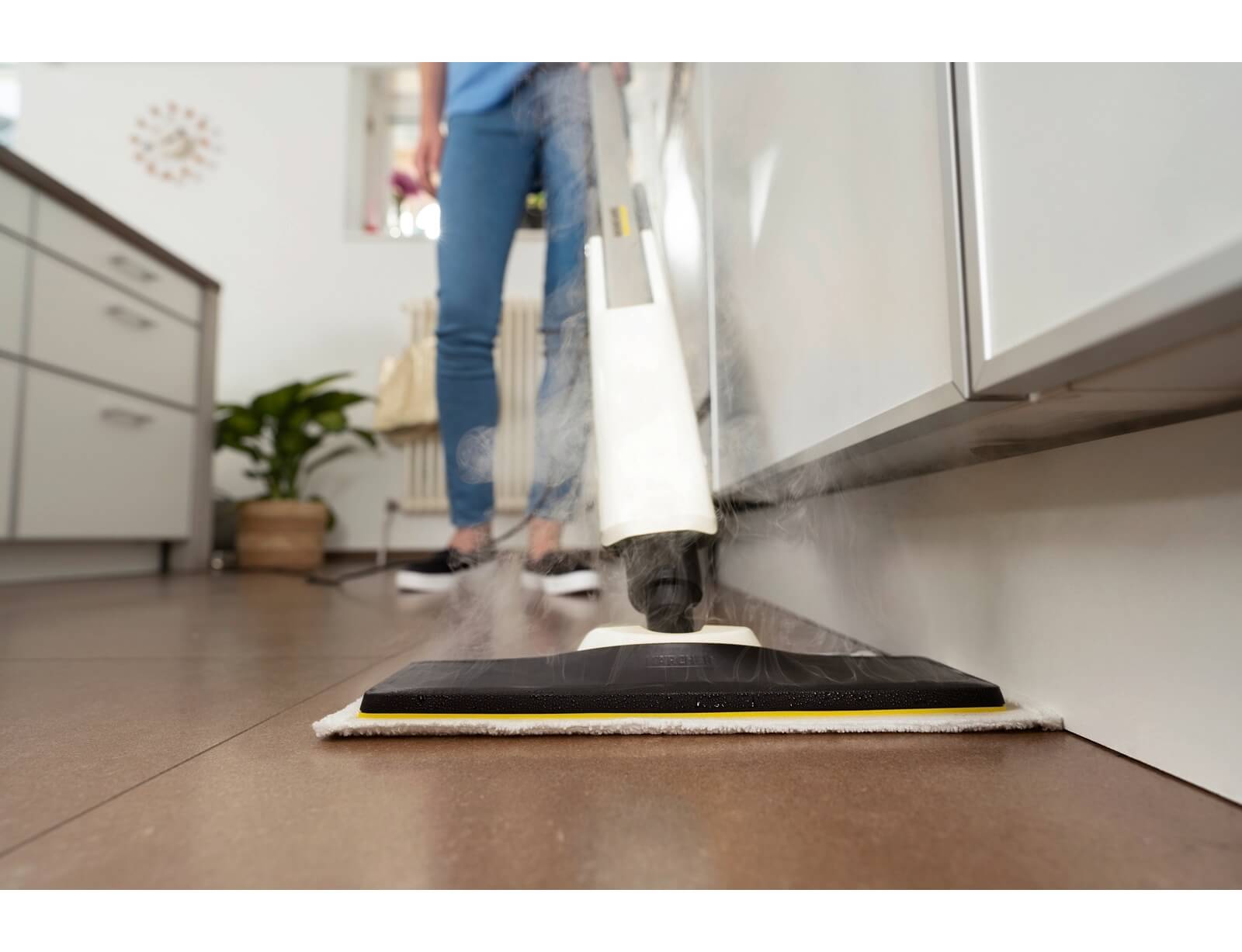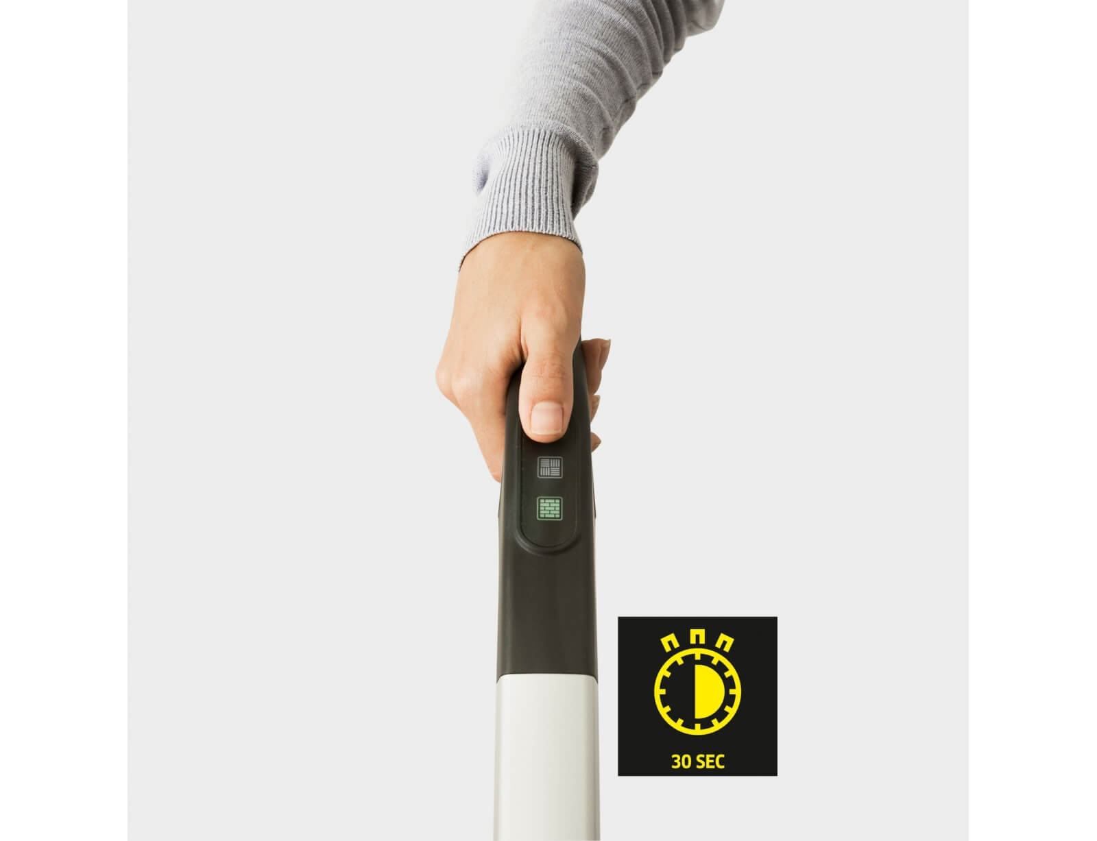 Χρήση ατμού για την αντιμετώπιση των ρύπων: Ο Kärcher SC 2 Upright μπορεί να καθαρίσει οποιοδήποτε σκληρό δάπεδο - ακόμη και ξύλο. Με τον προκαθορισμένο, εύχρηστο έλεγχο ροής ατμού με δύο βήματα, ο σχολαστικός καθαρισμός με τη χρήση της σφουγγαρίστρας ατμού Kärcher απομακρύνει έως και 99,999% των ιών* και 99,99% όλων των τυπικών οικιακών βακτηρίων** από τις σκληρές επιφάνειες. Η σφουγγαρίστρα ατμού θερμαίνεται στη στιγμή και είναι αμέσως έτοιμη για χρήση με ένα γεμιζόμενο και αφαιρούμενο δοχείο καθαρού νερού, συμπεριλαμβανομένου του φυσιγγίου αφαλάτωσης. Η κατάσταση λειτουργίας της συσκευής εμφανίζεται μέσω των χρωματικών κωδικών που εμφανίζονται στις λυχνίες LED στη λαβή. Ο συνδυασμός είναι τέλειος: για ακόμα βαθύτερο καθαρισμό και γρήγορη αλλαγή πανιών χωρίς επαφή με τη βρωμιά, τα πανιά καθαρισμού δαπέδων της Kärcher στερεώνονται στο ακροφύσιο δαπέδου EasyFix με ένα συνδετήρα με άγκιστρο και θηλιά.
