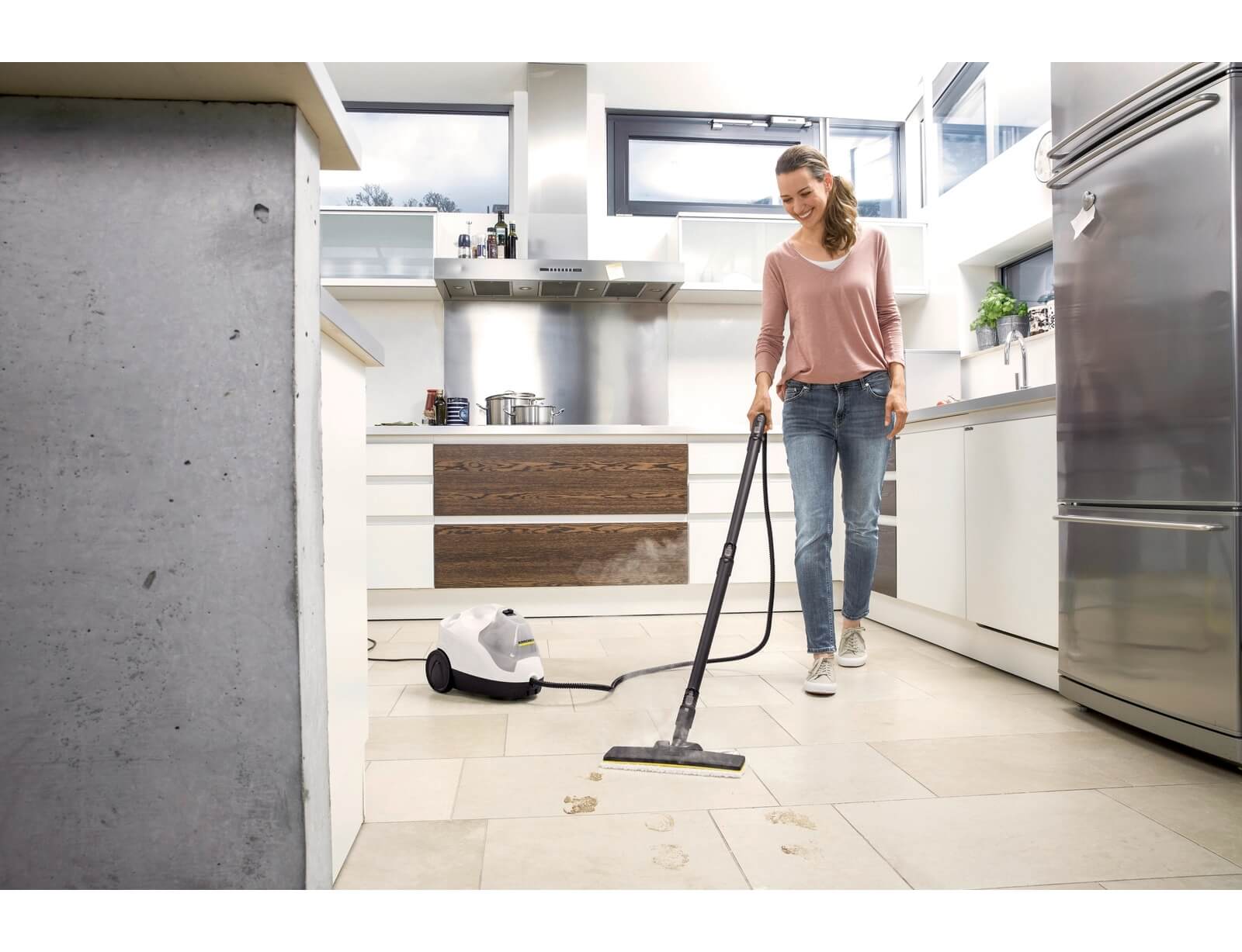 Ο ατμοκαθαριστής SC 4 EasyFix προσφέρει υψηλό επίπεδο άνεσης, καθώς διαθέτει ενσωματωμένη θήκη αποθήκευσης καλωδίων, θήκη αποθήκευσης εξαρτημάτων και θέση στάθμευσης για το ακροφύσιο δαπέδου. Το ακροφύσιο δαπέδου EasyFix εγγυάται άριστη εργονομία χάρη στην ευέλικτη άρθρωσή του και παρέχει αστραφτερά καθαρά αποτελέσματα. Χρησιμοποιώντας το βολικό σύστημα αγκίστρου και βρόχου, το πανί καθαρισμού δαπέδου μπορεί να συνδεθεί γρήγορα και εύκολα στο ακροφύσιο δαπέδου και να αφαιρεθεί ξανά χωρίς να έρθεις σε επαφή με τη βρωμιά. Με τη χρήση της ρύθμισης ατμού σε δύο στάδια, η ένταση του ατμού μπορεί να προσαρμοστεί στην επιφάνεια και το ρύπο. Η μεγάλη γκάμα εξαρτημάτων θα κάνει γρήγορα τα πλακάκια, τις εστίες, τους απορροφητήρες και ακόμη και τα μικρότερα κενά να λάμπουν σαν καινούργια - αφαιρώντας ακόμη και τους πιο επίμονους ρύπους. Το μόνιμα επαναγεμιζόμενο και αφαιρούμενο δοχείο νερού επιτρέπει τον αδιάλειπτο καθαρισμό. Ο SC 4 EasyFix καθαρίζει χωρίς χημικά και μπορεί να χρησιμοποιηθεί σχεδόν οπουδήποτε στο σπίτι. Ο σχολαστικός καθαρισμός με τον ατμοκαθαριστή της Kärcher απομακρύνει το 99,999% των ιών* και το 99,99% όλων των κοινών οικιακών βακτηρίων** από τις τυπικές σκληρές επιφάνειες του νοικοκυριού.
