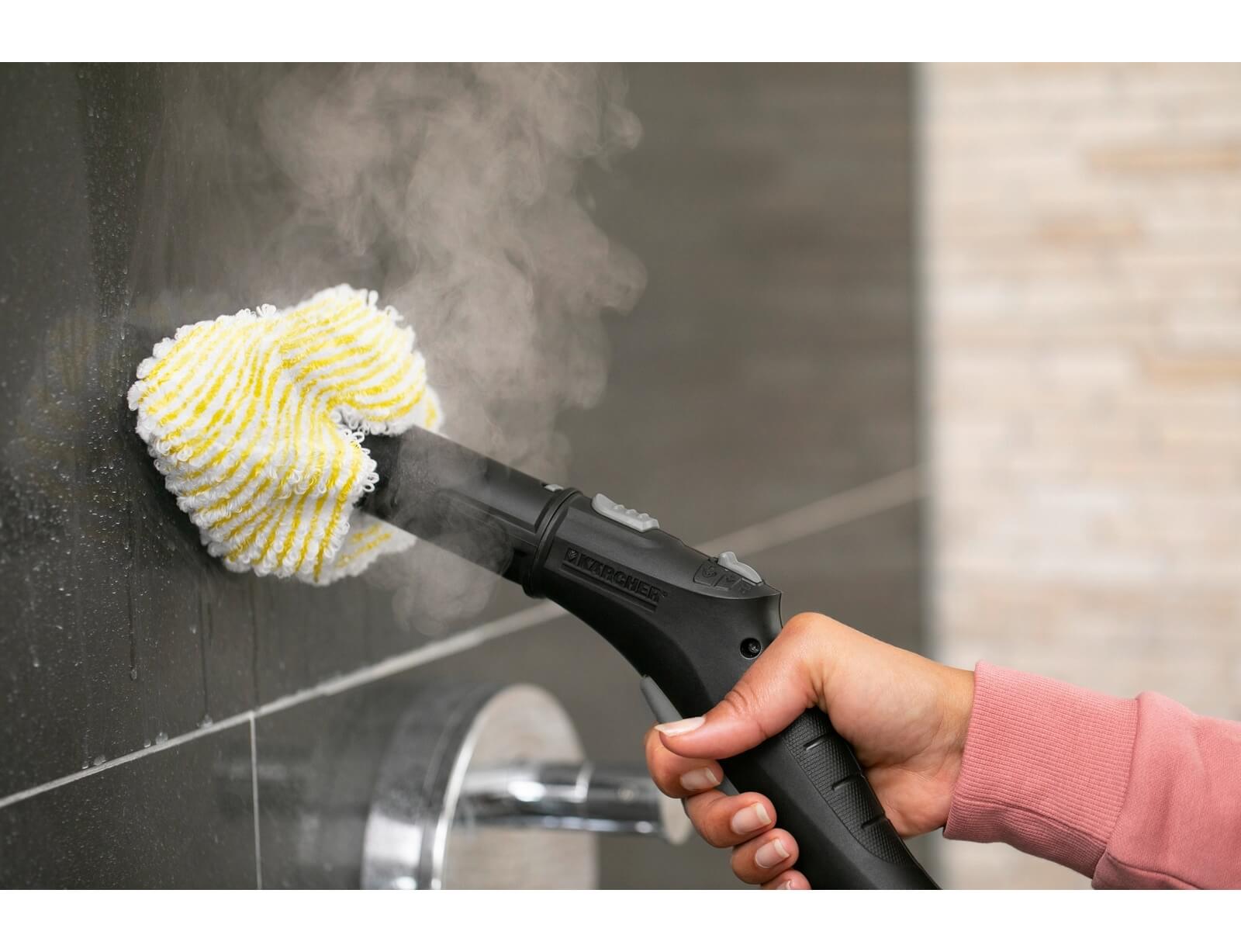 Το εξαιρετικά βολικό SC 4 EasyFix Iron καθαρίζει χωρίς χημικά προϊόντα και μπορεί να χρησιμοποιηθεί σε οποιοδήποτε χώρο του σπιτιού. Με τη ρύθμιση ατμού δύο σταδίων, η ένταση του ατμού μπορεί να προσαρμοστεί ανάλογα με την επιφάνεια και τους ρύπους. Ο σχολαστικός καθαρισμός με τον ατμοκαθαριστή της Kärcher απομακρύνει το 99,99% όλων των κοινών οικιακών βακτηρίων από τις σκληρές επιφάνειες στο σπίτι. Με τη χρήση των κατάλληλων εξαρτημάτων, η συσκευή καθαρίζει άψογα τα πλακάκια, τις εστίες, τους απορροφητήρες, ακόμα και τις μικρότερες χαραμάδες. Απομακρύνονται αξιόπιστα ακόμα και οι επίμονοι ρύποι. Το ατμοσίδερο ατμού μειώνει τον χρόνο που απαιτείται για το σιδέρωμα κατά το ήμισυ. Το ακροφύσιο δαπέδου EasyFix εντυπωσιάζει χάρη στον ευέλικτο σύνδεσμο για άψογη εργονομία και την τεχνολογία ελασμάτων για τέλεια αποτελέσματα καθαρισμού. Χάρη στο βολικό σύστημα hook-and-loop, το πανί δαπέδου μικροϊνών μπορεί να συνδεθεί και να αποσυνδεθεί εύκολα και γρήγορα από το ακροφύσιο δαπέδου χωρίς να έρθεις σε επαφή με τους ρύπους. Το αφαιρούμενο δοχείο νερού ξαναγεμίζει άμεσα για καθαρισμό χωρίς διακοπές. Περισσότερες λεπτομέρειες για τον εξοπλισμό: Ενσωματωμένο τμήμα αποθήκευσης καλωδίου, τμήμα αποθήκευσης εξαρτημάτων, θέση στάθμευσης για το ακροφύσιο δαπέδου.