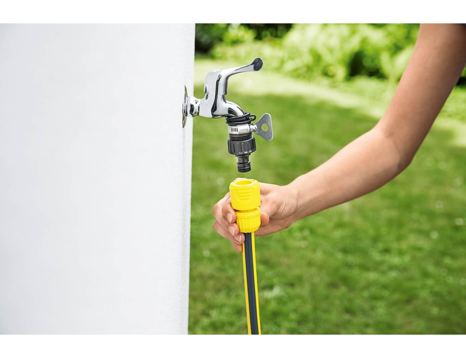Το σετ λάστιχο παροχής νερού μποερί να χρησιμοποιηθεί σαν λάστιχο παροχής νερού τόσο για τα πλυστικά μηχανήματα, όσο και για το πότισμα του κήπου. Το σετ περιλαμβάνει ένα λάστιχο PrimoFlex® (1/2''), ένα σύνδεσμο λάστιχου, ένα σύνδεσμο λάστιχου με Aqua Stop και ένα σύνδεσμο γενικής χρήσης για βρύσες χωρίς νήμα. O μειωτήρας επιτρέπει στον αντάπτορα βρύσης να μπορεί να χρησιμοποιηθεί σε βρύσες με εξωτερική διάμτερο μεταξύ 15 και 20 mm. Όλα μπορούν να συνδεθούν χωρίς τη χρήση εργαλείων.