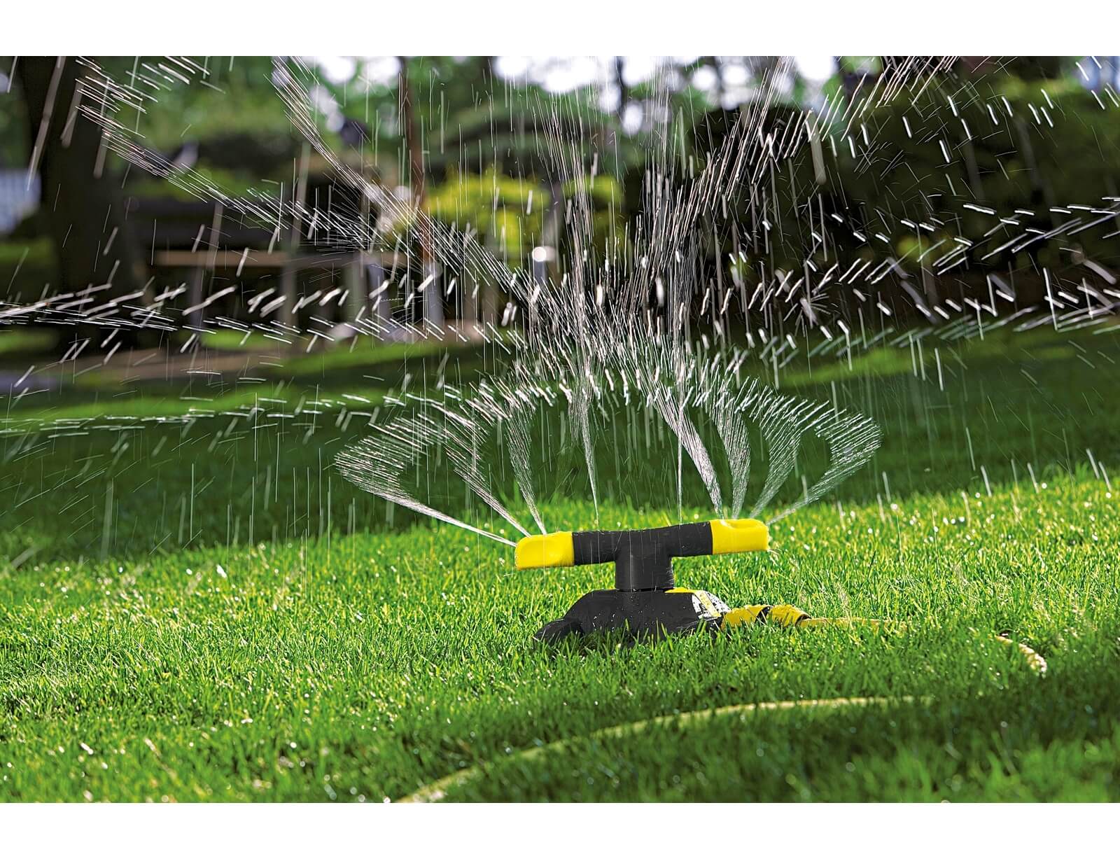 Το κυκλικό ψεκαστικό RS 120/2 είναι ιδανικό για το πότισμα μικρών έως μεγάλων επιφανειών και κήπων. Καλύπτει πάνω από 113 τμ. Συνδέεται εύκολα με το λάστιχο κήπου και είναι κατάλληλο για όλους τους συνδέσμους.