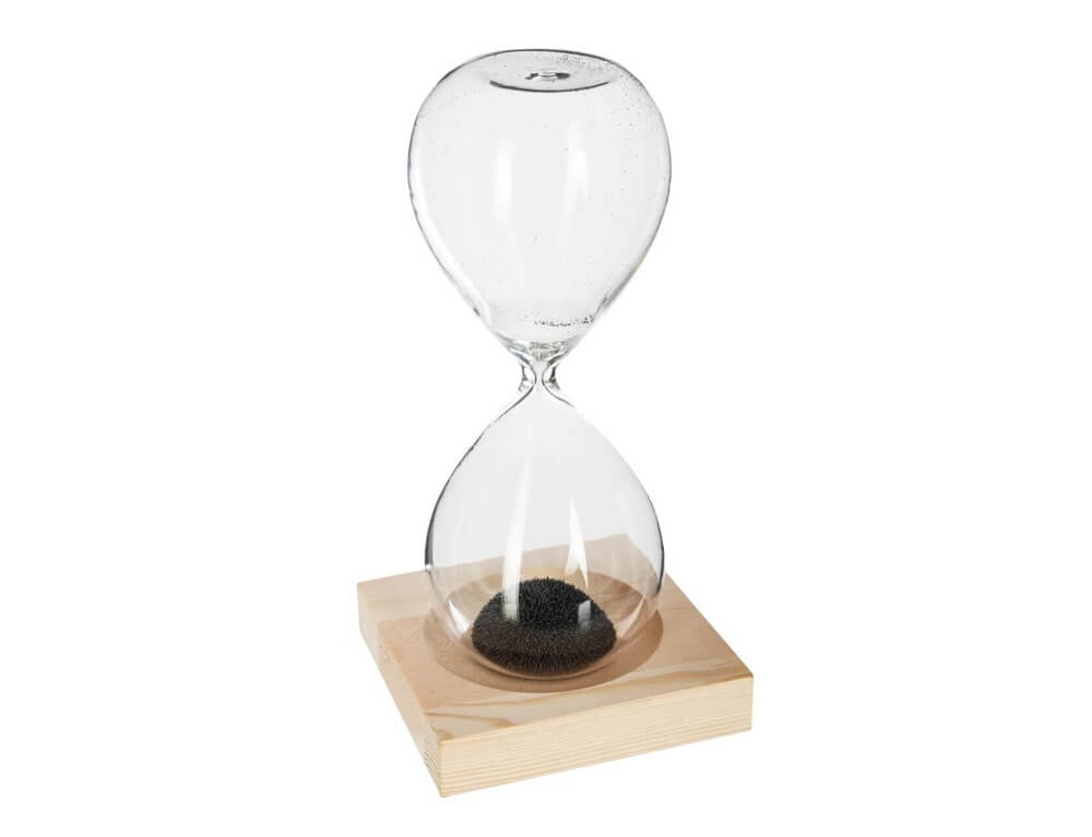 Διακοσμήστε το σαλόνι ή το γραφείο σας με την κλεψύδρα από την εταιρεία Atmosphera. Είναι κατασκευασμένη από γυαλί και εσωτερικά έχει άμμο σε μαύρο χρώμα. Διαθέτει βάση από ξύλο πεύκου σε απόχρωση ξύλου. Στη βάση υπάρχει μαγνήτης και το γυάλινο δοχείο είναι γεμάτο με άμμο που αποτελείται από μέταλλο που θα σχηματίσει απροσδόκητες συνθέσεις όταν πέσει πάνω στο μαγνητικό τμήμα. Τοποθετήστε την στην τραπεζαρία ή στο τραπεζάκι του σαλονιού για να δώσετε μια μοναδική νότα στο χώρο σας.