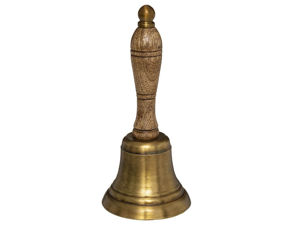 Διακοσμήστε το σαλόνι ή το γραφείο σας με το κουδούνι χειρός από την εταιρεία Atmosphera. Η χειροποίητη λαβή είναι κατασκευασμένη από ξύλο μάνγκο και η καμπάνα από βουρτσισμένο αλουμίνιο έχει μπρούτζινη όψη.