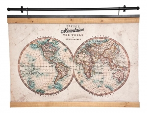 Ο παγκόσμιος χάρτης από την εταιρεία Atmosphera, σε καμβά είναι ιδανικός για να διακοσμήσει οποιοδήποτε χώρο επιθυμείτε. Ο χάρτης απεικονίζει τα ημισφαίρια της γης σε φυσικές και vintage αποχρώσεις και θα προσθέσει μια πρωτότυπη, κομψή και κλασική πινελιά στο χώρο σας.