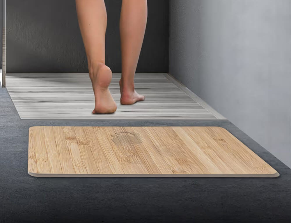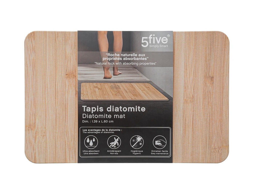 Το απορροφητικό πατάκι μπάνιου από την εταιρεία 5five είναι η κατάλληλη προσθήκη στο μπάνιο σας. Είναι κατασκευασμένο από διατομίτη, ένα πορώδες και φυσικό ορυκτό που απορροφάει εύκολα το νερό και στεγνώνει εξαιρετικά γρήγορα, αποτρέποντας την ανάπτυξη μούχλας και βακτηρίων. Είναι αντιολισθητικό με σαγρέ επιφάνεια και είναι εύκολο στο καθάρισμα αφού η βρωμιά και οι τρίχες μπορούν να ξεπλυθούν με νερό ή να σκουπιστούν με ένα υγρό πανί.