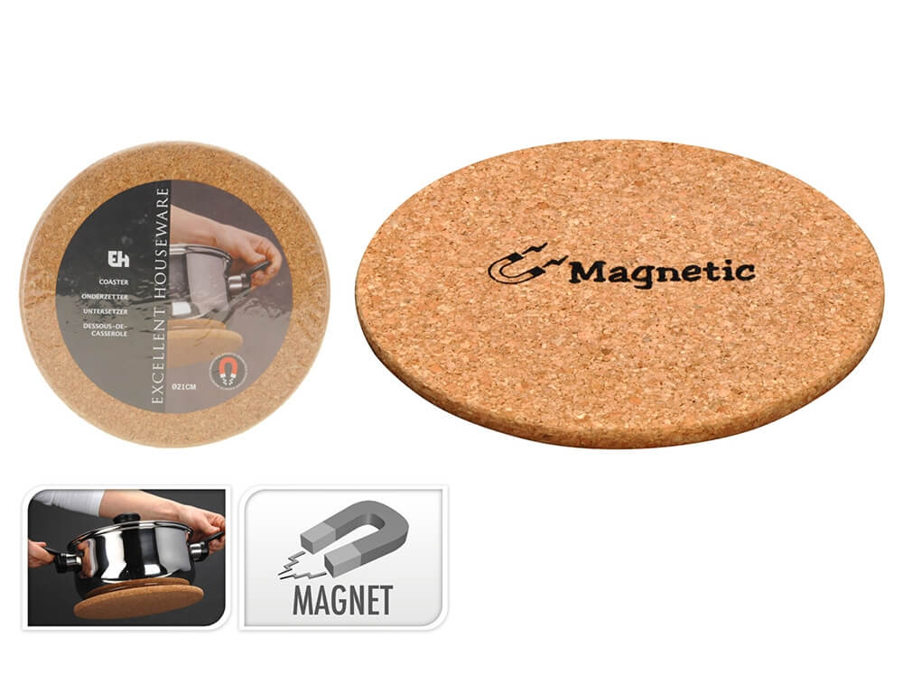 Ένα σουπλά για μαγειρικά σκεύη είναι πάντα η ιδανική προσθήκη στην κουζίνα σας. Μπορείτε να τοποθετήσετε πάνω κατσαρόλες, πιάτα κτλ, τα οποία είναι πολύ ζεστά χωρίς να καταστρέψετε τον πάγκο ή το τραπέζι σας. Eίναι κατασκευασμένο από φελλό, ένα υλικό ανθεκτικό στις υψηλές θερμοκρασίες. Στο εσωτερικό του διαθέτει 2 μαγνήτew για να μπορείτε να μεταφέρετε τα ζεστά σκεύη σας και να τα ακουμπάτε όπου θέλετε.