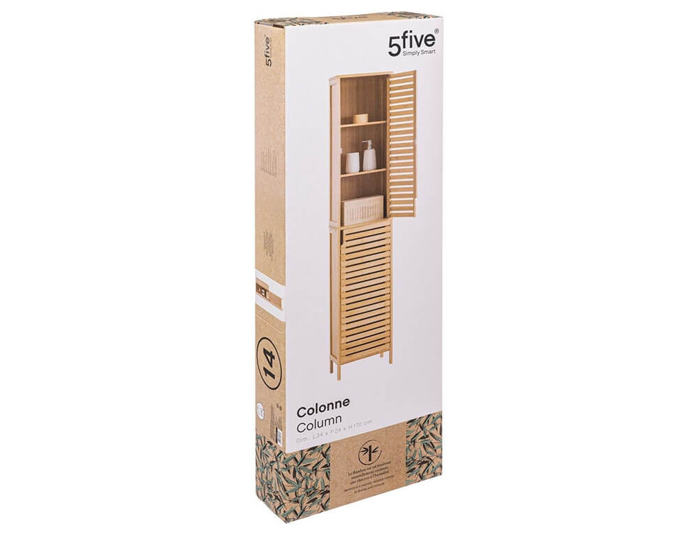 Οργανώστε και κρατήστε τακτοποιημένο το μπάνιο σας με τη στήλη μπάνιου από τη 5five. Τα ράφια μπορείτε να τα τοποθετήσετε εσείς σε όποιο ύψος επιθυμείτε και κάθε ράφι έχει μέγιστη αντοχή βάρους τα 5kg. Είναι κατασκευασμένο από ξύλο μπαμπού, ένα υλικό ανθεκτικό στην υγρασία και τα χτυπήματα, που δεν σαπίζει και απαιτεί ελάχιστη ή καθόλου συντήρηση.
