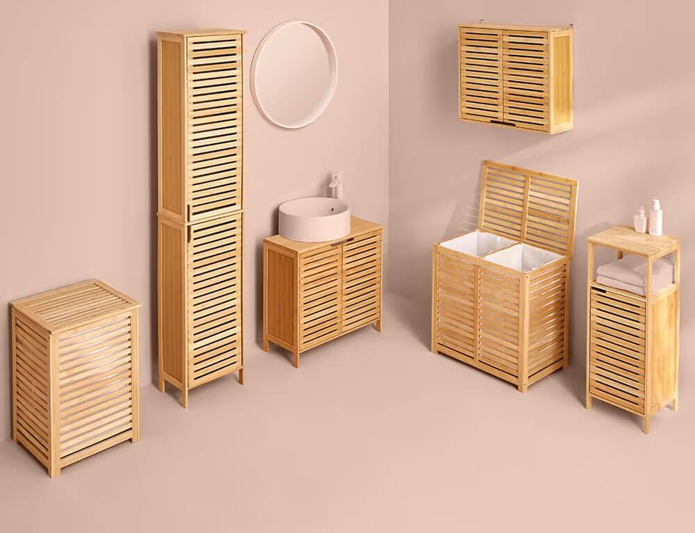 Επιδαπέδια Στήλη Μπάνιου Sicela 5five - Ξύλο Bamboo - 33x28x168cm - Απόχρωση Ξύλου