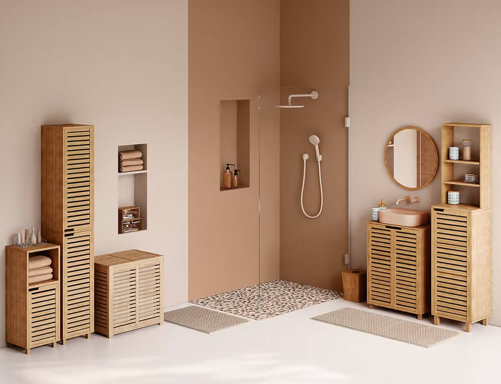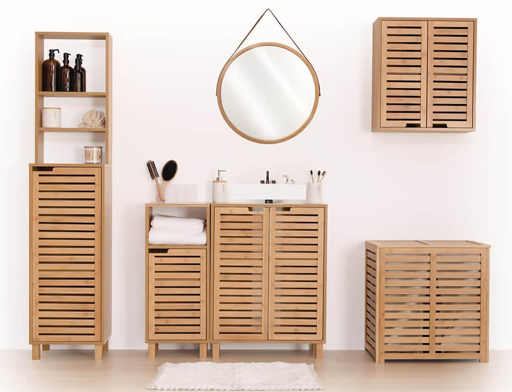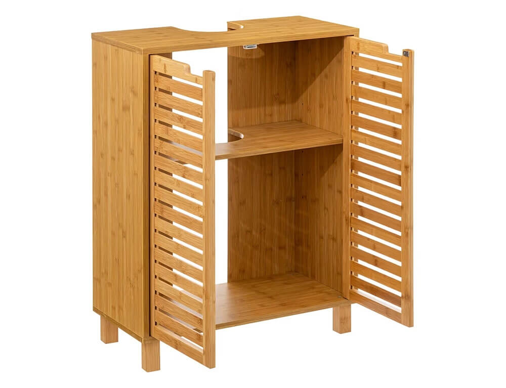 Οργανώστε και κρατήστε τακτοποιημένο το μπάνιο σας με τo έπιπλο μπάνιου από τη 5five. Διαθέτει 2 ράφια και είναι κατασκευασμένο από ξύλο μπαμπού, ένα υλικό ανθεκτικό στην υγρασία και τα χτυπήματα, που δεν σαπίζει και απαιτεί ελάχιστη ή καθόλου συντήρηση.