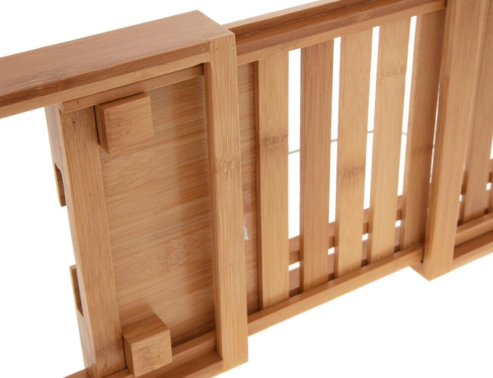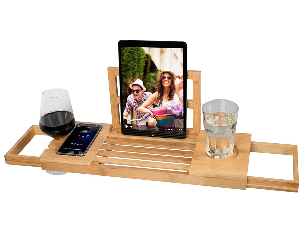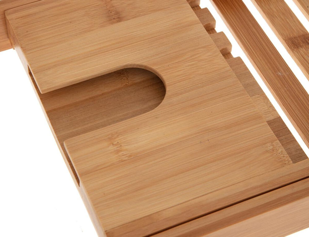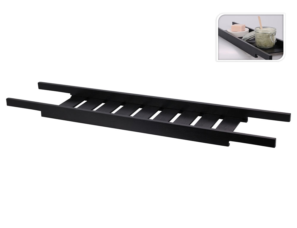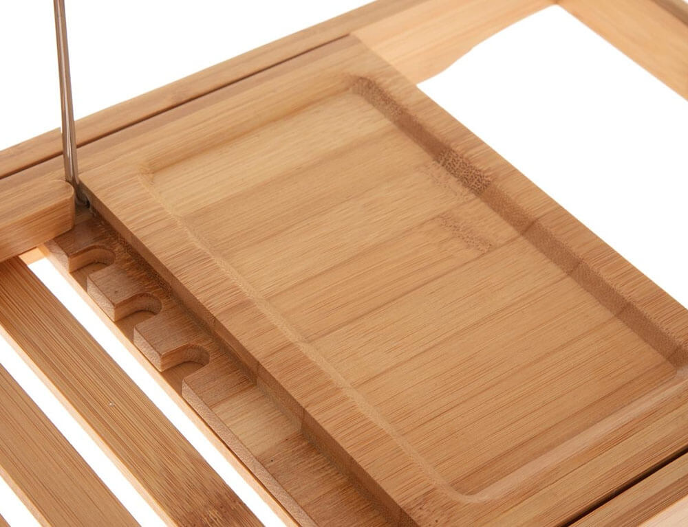 Με το ράφι από την 5five μπορείτε να απολαύσετε ένα χαλαρωτικό μπάνιο έχοντας κοντά σας τα προϊόντα προσωπική σας περιποίησης, ένα ποτήρι κρασί, ένα βιβλίο ή ακόμα το κινητό σας. Απλά τοποθετήστε το στη μπανιέρα σας. Είναι κατασκευασμένο από ξύλο μπαμπού, ένα υλικό φιλικό προς το περιβάλλον και ανθεκτικό στο χρόνο. Επίσης, είναι λιγότερο επιρρεπές σε φούσκωμα και μπορεί να καθαριστεί εύκολα.