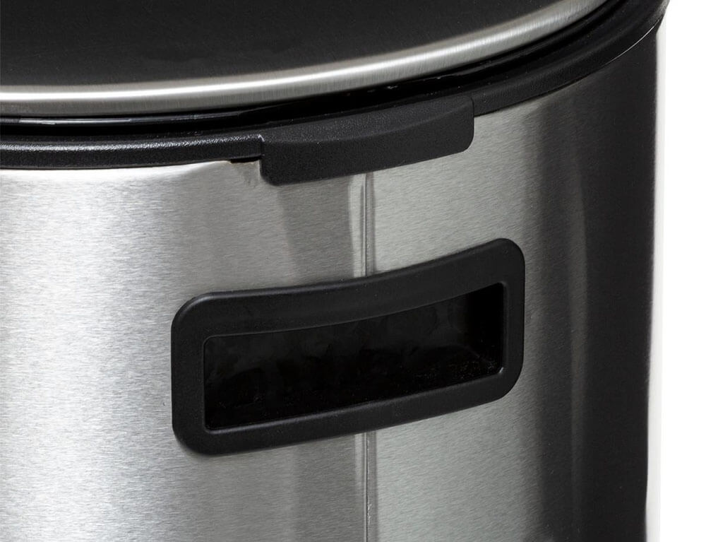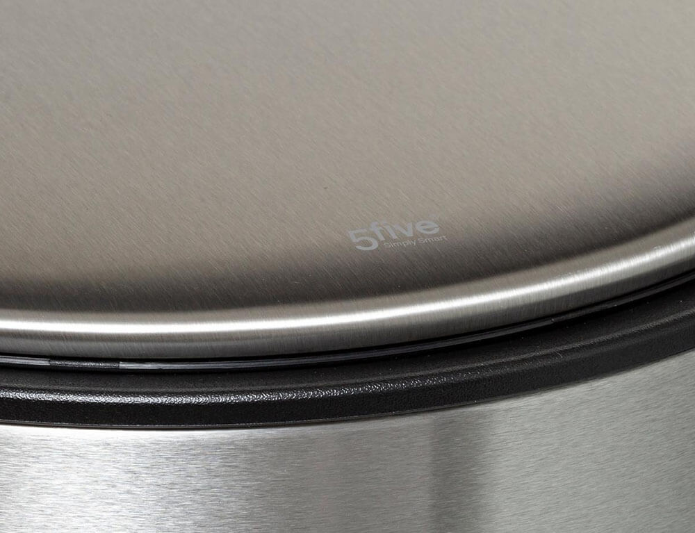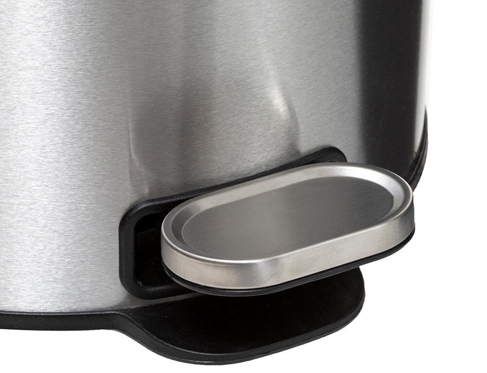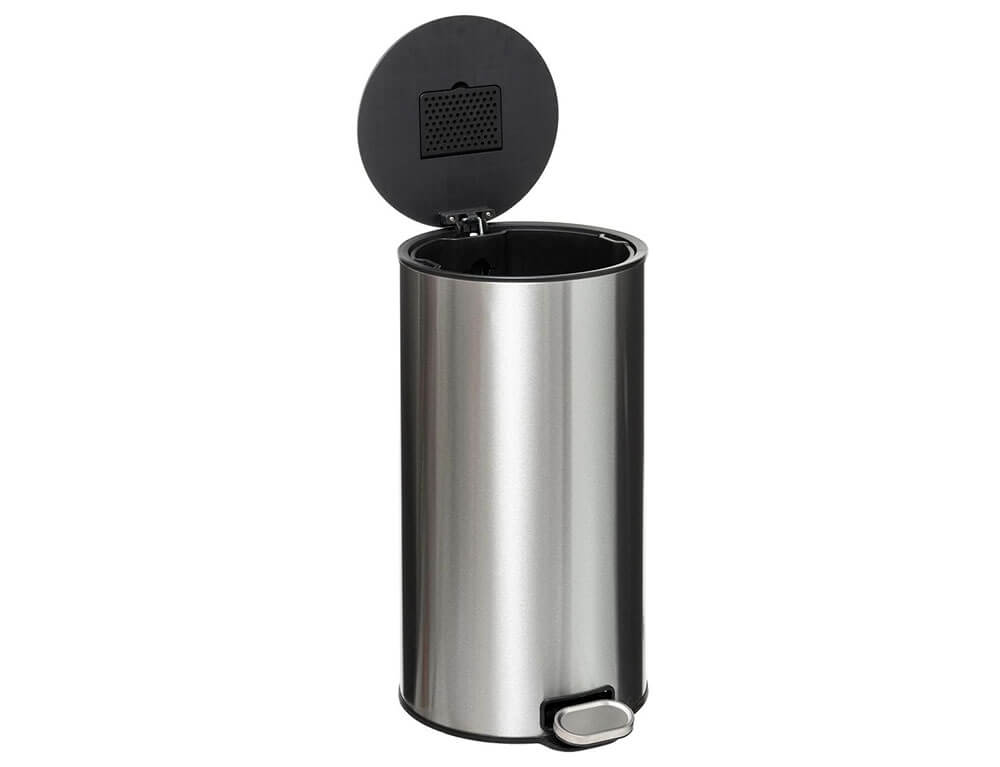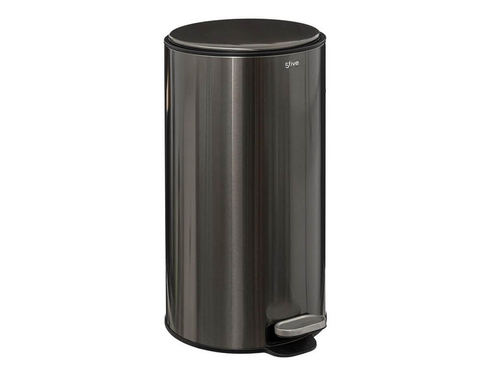 Kάδος απορριμάτων από τη 5five με χωρητικότητα 30 λίτρα. Διαθέτει φίλτρο ενεργού άνθρακα, το οποίο εξουδετερώνει οποιαδήποτε δυσάρεστη οσμή. Είναι κατασκευασμένος από μέταλλο, διαθέτει ανθεκτική κατασκευή με πεντάλ και καπάκι που κλείνει αργά χωρίς να προκαλεί θόρυβο. Εσωτερικά διαθέτει πλαστικό κάδο που αφαιρείται εύκολα, ώστε να τον πλένετε και να τον επανατοποθετείτε. Στο πίσω μέρος διαθέτει λαβή για πιο εύκολη μεταφορά.