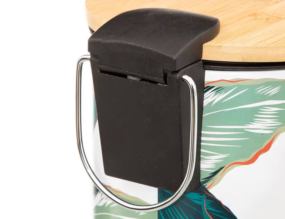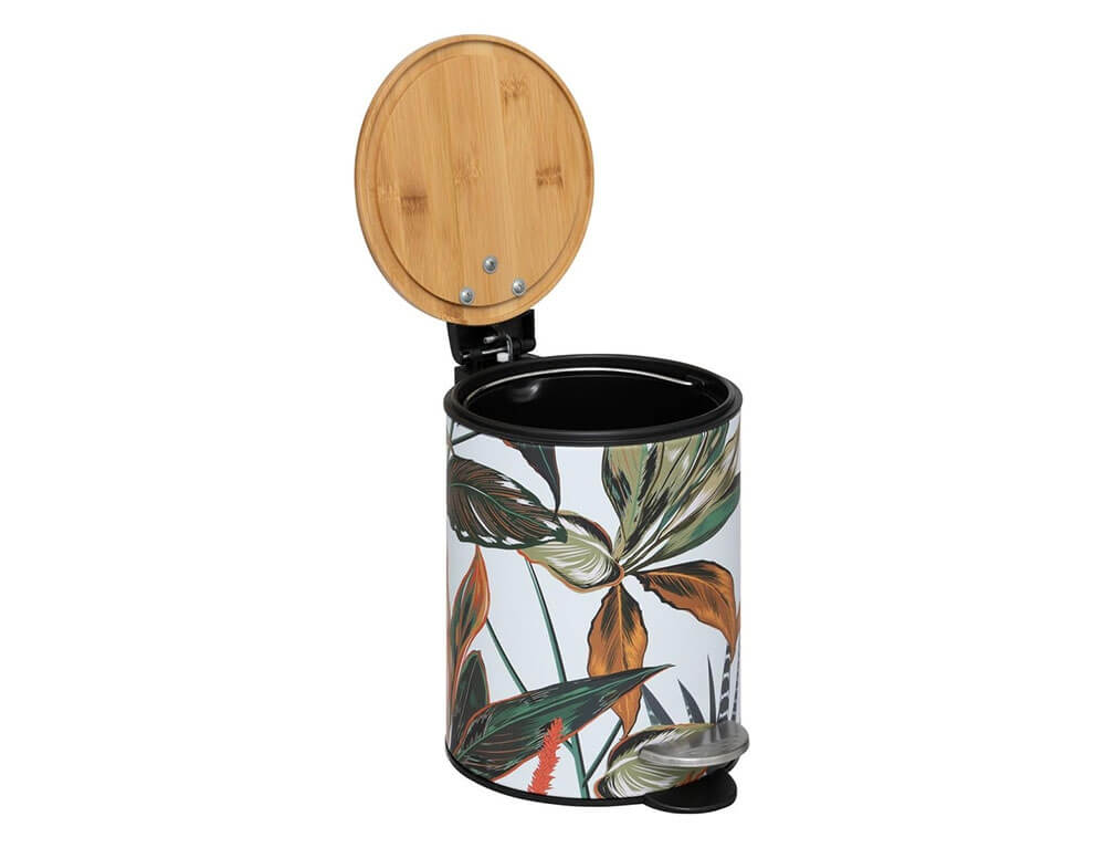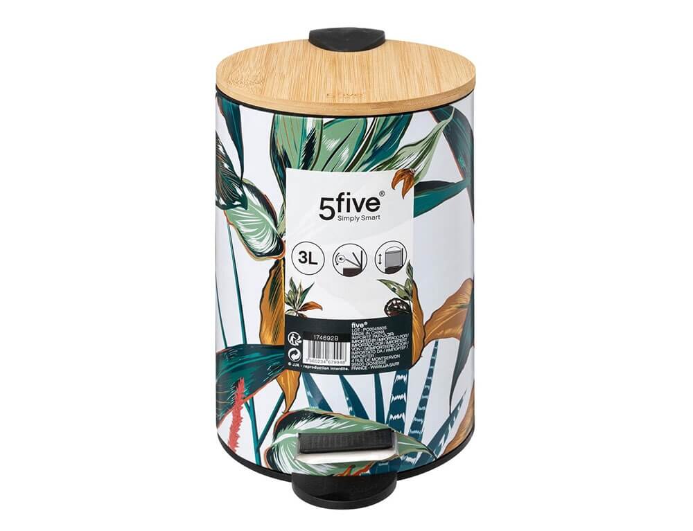 Kάδος απορριμάτων από τη 5five με χωρητικότητα 3 λίτρα. Είναι κατασκευασμένος από μέταλλο, διαθέτει ανθεκτική κατασκευή με πεντάλ και καπάκι που κλείνει αργά χωρίς να προκαλεί θόρυβο. Εσωτερικά διαθέτει πλαστικό κάδο που αφαιρείται εύκολα, ώστε να τον πλένετε και να τον επανατοποθετείτε. Στο πίσω μέρος διαθέτει λαβή για πιο εύκολη μεταφορά.