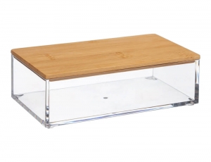 Δοχείο oργάνωσης Μake up της εταιρείας 5Five. Mπορείτε να το χρησιμοποιήσετε για να τοποθετήσετε μέσα τα μικροπράγματά σας όπως λαστιχάκια, κοσμήσματα, δαχτυλίδια, δίσκους ντεμακιγιάζ κλπ. Είναι κατασκευασμένo από κεραμικό υλικό ενώ το καπάκι από ξύλο bamboo, το οποίο είναι εύκολο στη συντήρηση, αλλά παράλληλα και ανθεκτικό στις φθορές και τον χρόνο.