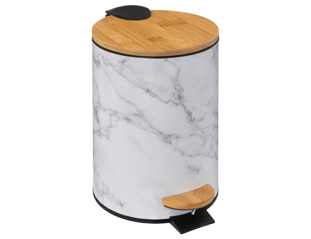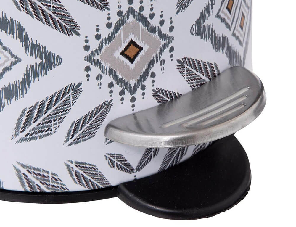 Kάδος απορριμάτων από τη 5five με χωρητικότητα 5 λίτρα. Είναι κατασκευασμένος από μέταλλο, διαθέτει ανθεκτική κατασκευή με πεντάλ και καπάκι που κλείνει αργά χωρίς να προκαλεί θόρυβο. Εσωτερικά διαθέτει πλαστικό κάδο που αφαιρείται εύκολα, ώστε να τον πλένετε και να τον επανατοποθετείτε. Στο πίσω μέρος διαθέτει λαβή για πιο εύκολη μεταφορά.