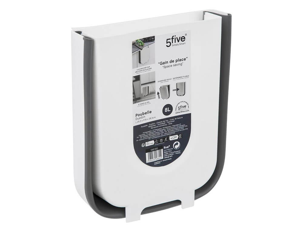 Διατηρήστε την κουζίνα σας καθαρή και τακτοποιημένη όσο μαγειρεύετε με το πτυσσόμενο καλάθι απορριμμάτων από την 5five. Έχει χωρητικότητα 8 λίτρα και μπορείτε να το κρεμάσετε είτε στα ντουλάπια ή οπουδήποτε σας βολεύει. Είναι κατασκευασμένος από πλαστικό άριστης ποιότητας και καουτσούκ, που διασφαλίζουν ότι δε θα υπάρξουν διαρροές από τα καθημερινά απορρίμματα της κουζίνας.