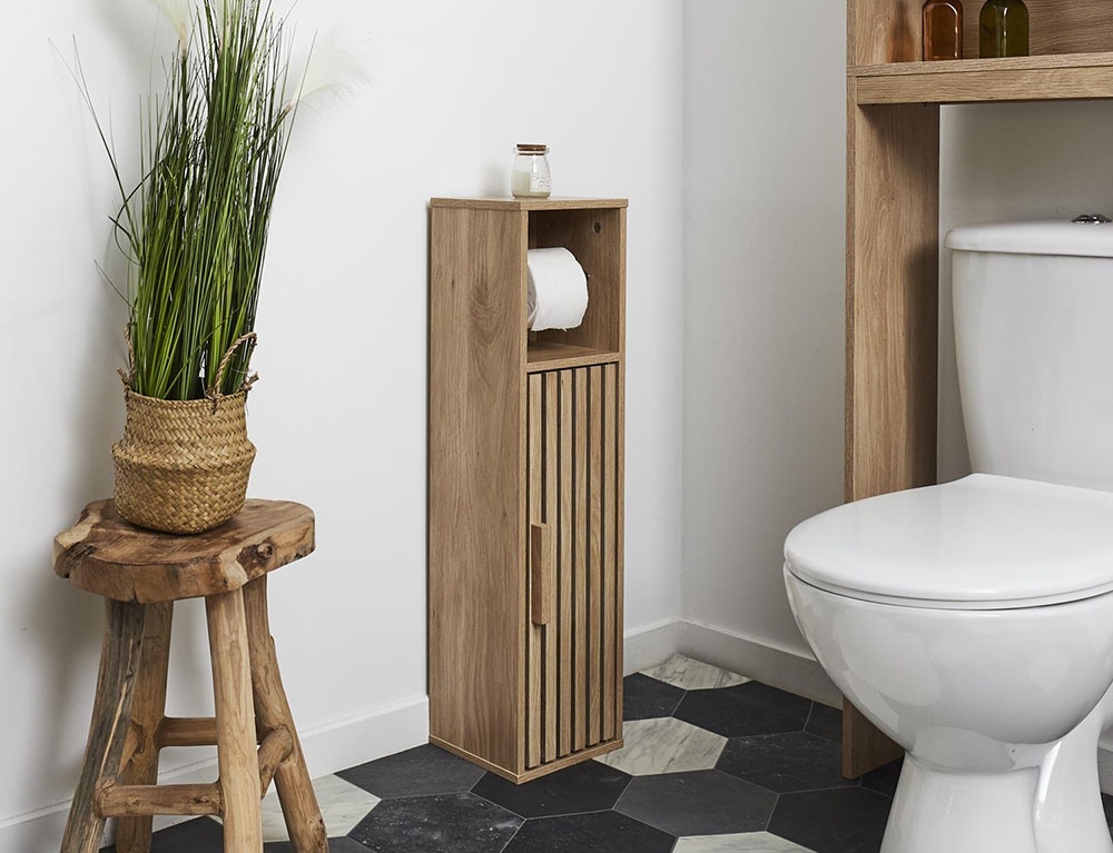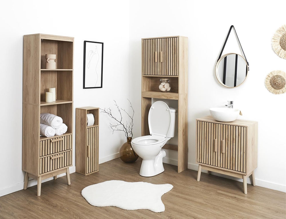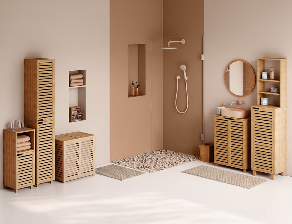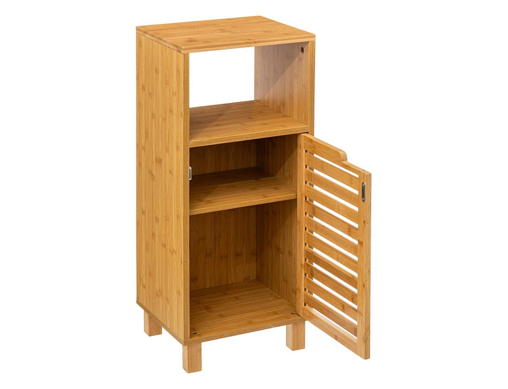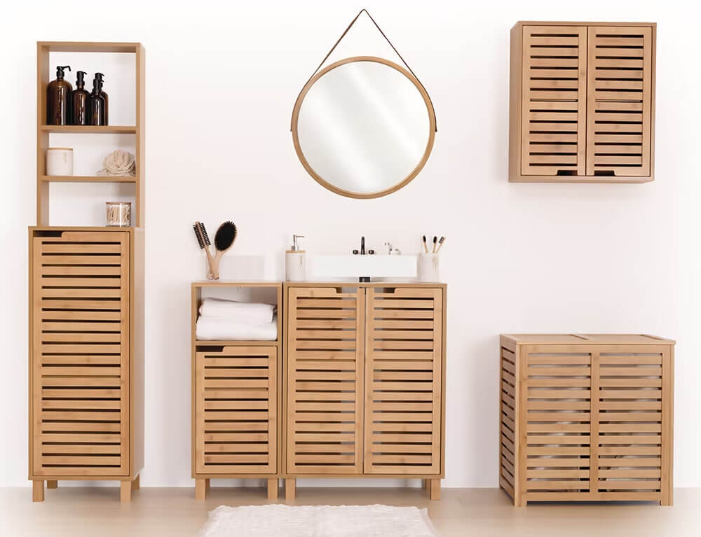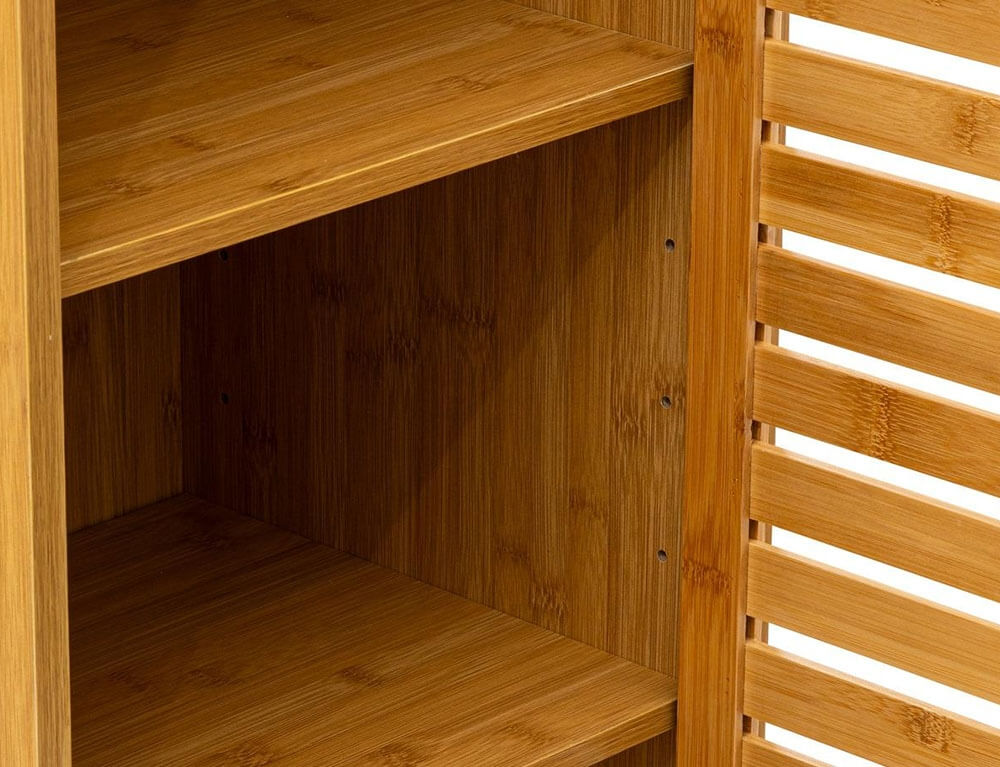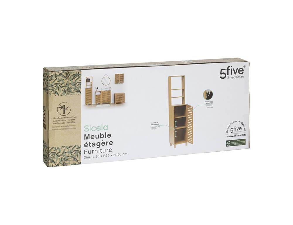 Οργανώστε και κρατήστε τακτοποιημένο το μπάνιο σας με τo έπιπλο μπάνιου Sicela από τη 5five. Τα ράφια που βρίσκονται στο ντουλάπι μπορείτε να τα τοποθετήσετε εσείς σε όποιο ύψος επιθυμείτε. Είναι κατασκευασμένο από ξύλο μπαμπού, ένα υλικό ανθεκτικό στην υγρασία και τα χτυπήματα, που δεν σαπίζει και απαιτεί ελάχιστη ή καθόλου συντήρηση.