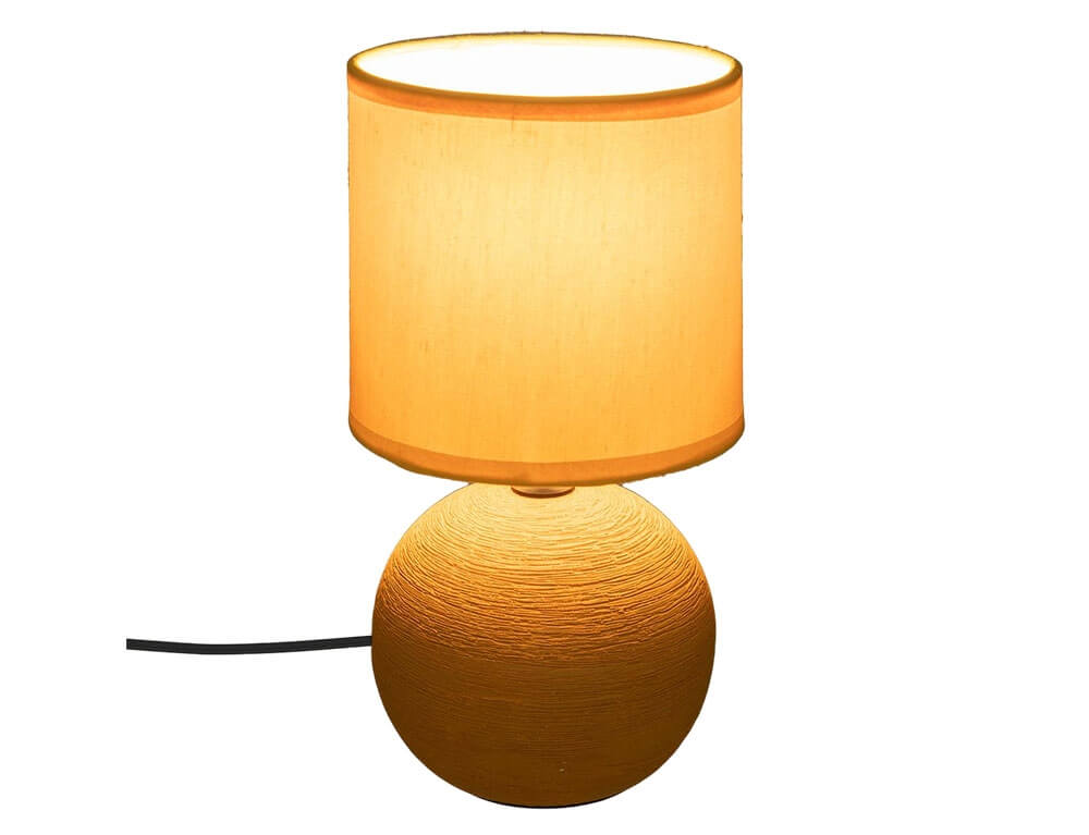 Με το επιτραπέζιο φωτιστικό από την Atmosphera θα δημιουργήσετε μια μοναδική ατμόσφαιρα και θα δώσετε μια μοντέρνα νότα σε οποιοδήποτε χώρο του σπιτιού σας. Η βάση του είναι κατασκευασμένη από κεραμικό και το αμπαζούρ από ύφασμα με βάση το βαμβάκι και τον πολυεστέρα.