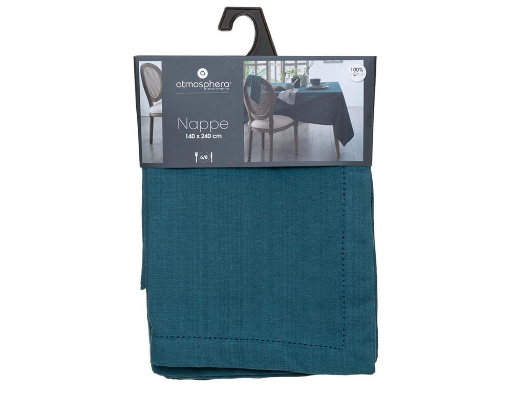 Ανανεώστε και αναδείξτε την τραπεζαρία σας με το τραπεζομάντηλο Jane από την Atmosphera. Η μπλε απόχρωση του θα δώσει μια μοντέρνα και κομψή αίσθηση στο χώρο σας. Είναι κατασκευασμένο από 100% βαμβάκι και καθαρίζεται εύκολα. Για καλύτερη φροντίδα συνίσταται πλύση και σιδέρωμα σε χαμηλές θερμοκρασίες και να μην χρησιμοποιείται κάποιο λευκαντικό.