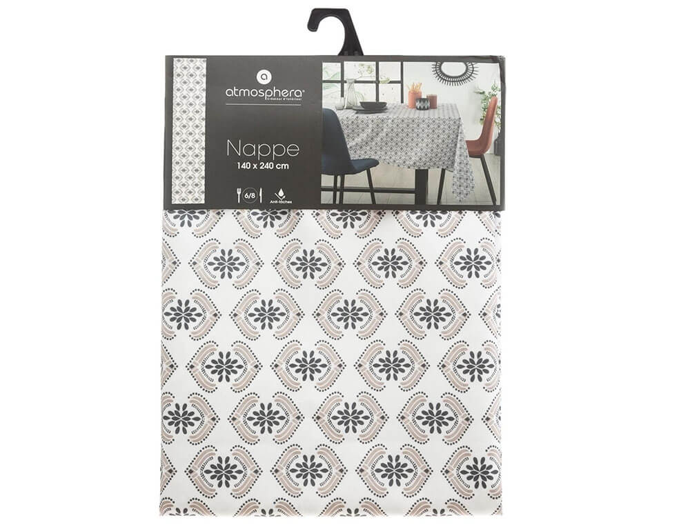 Ανανεώστε και αναδείξτε την τραπεζαρία σας με το τραπεζομάντηλο Hindi από την Atmosphera. Με Art Deco μοτίβα σε ανθρακί απόχρωση θα δώσει μια μοντέρνα αίσθηση στο χώρο σας. Είναι κατασκευασμένο από 100% πολυεστέρα και διαθέτει επίστρωση, η οποία δεν λεκιάζει. Είναι πολύ πρακτικό, εύχρηστο και καθαρίζεται εύκολα. Για καλύτερη φροντίδα συνίσταται πλύση και σιδέρωμα σε χαμηλές θερμοκρασίες και να μην χρησιμοποιείται κάποιο λευκαντικό.